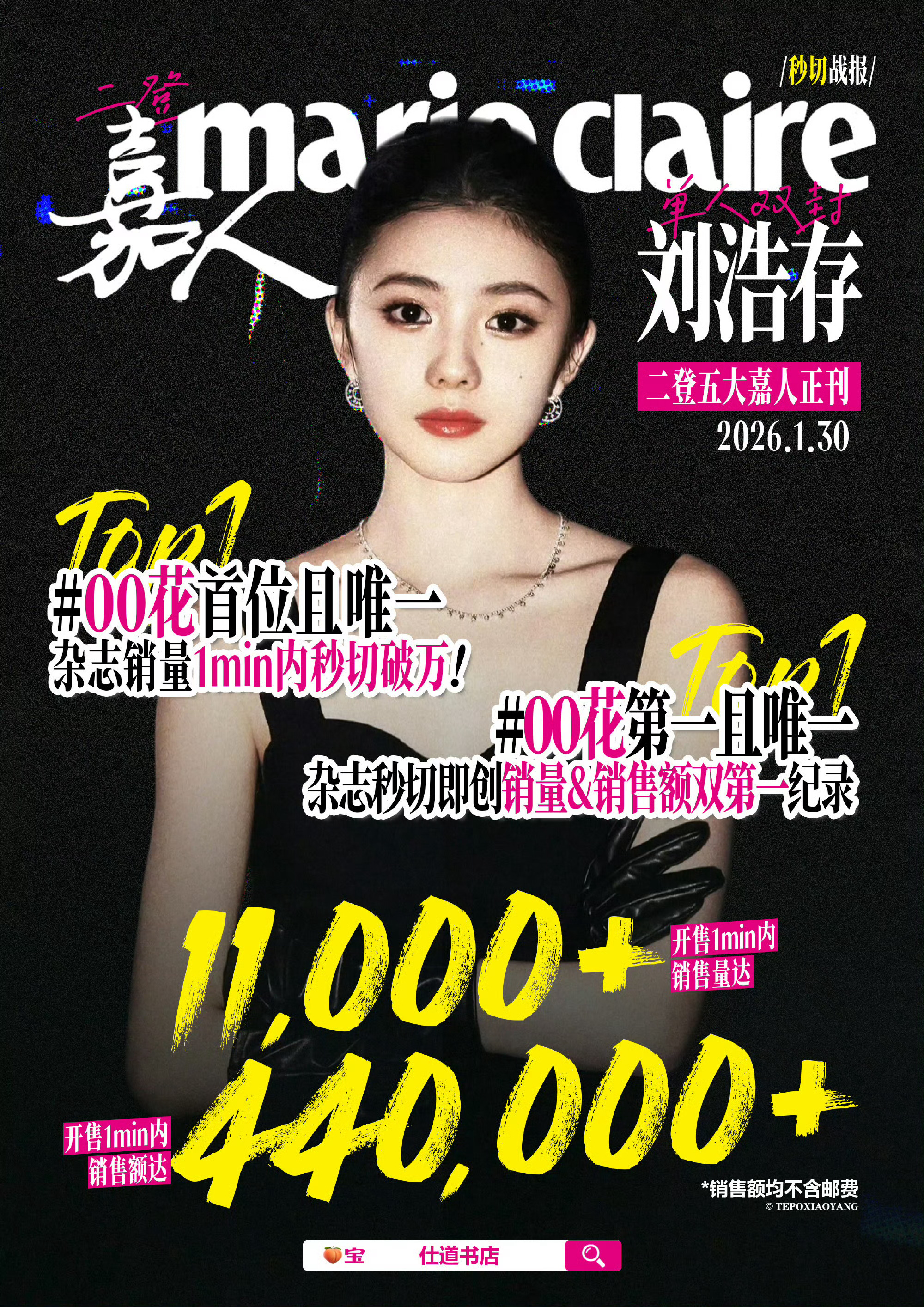 刘浩存嘉人二月刊一分钟销量破万!创下销量&销售额双第一纪录🔥!!!