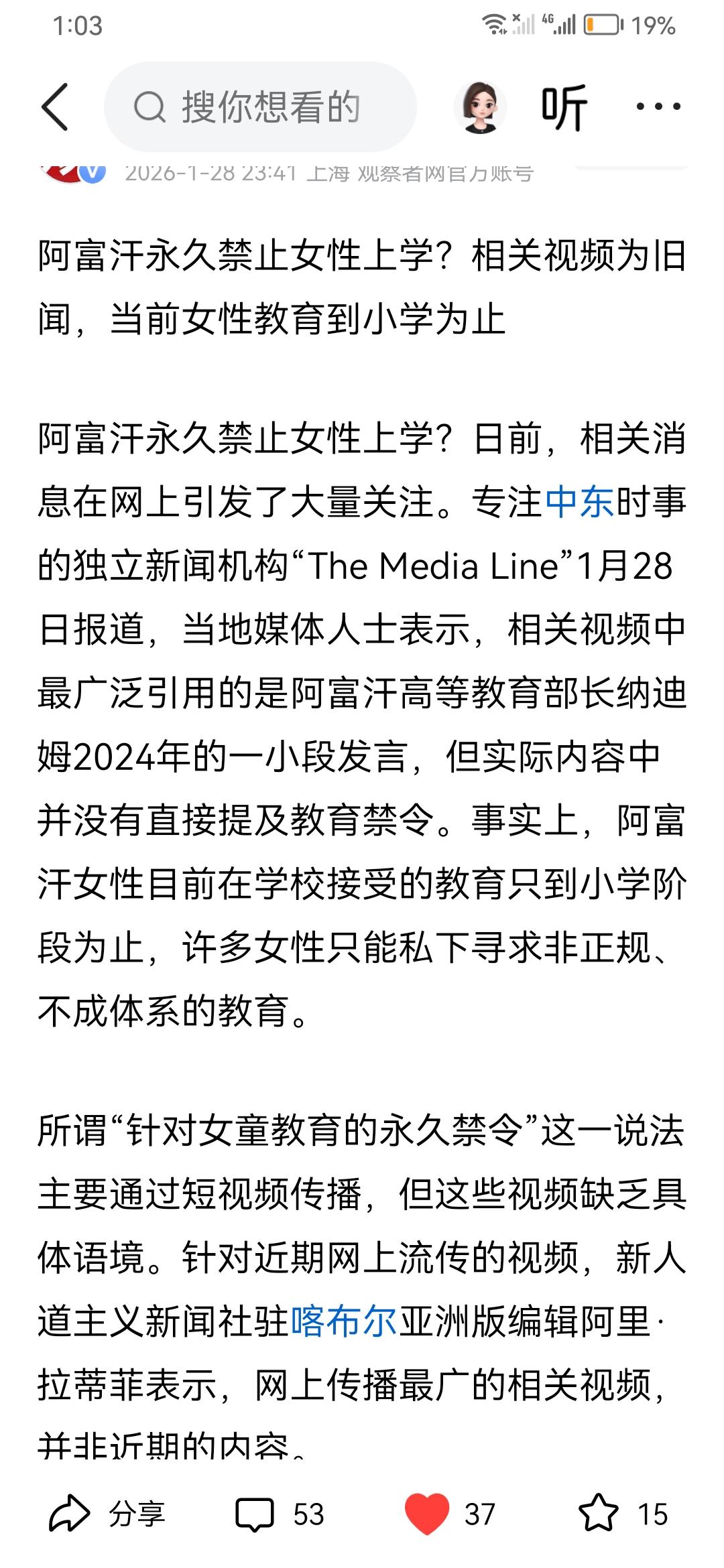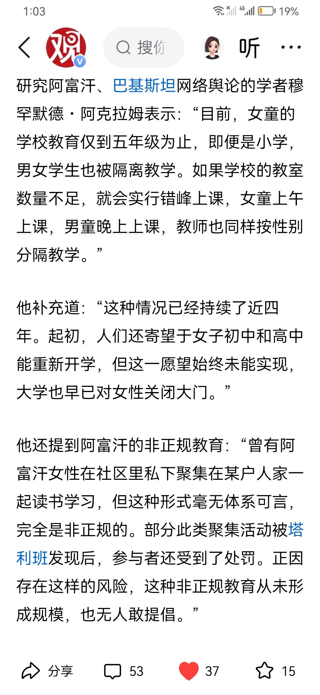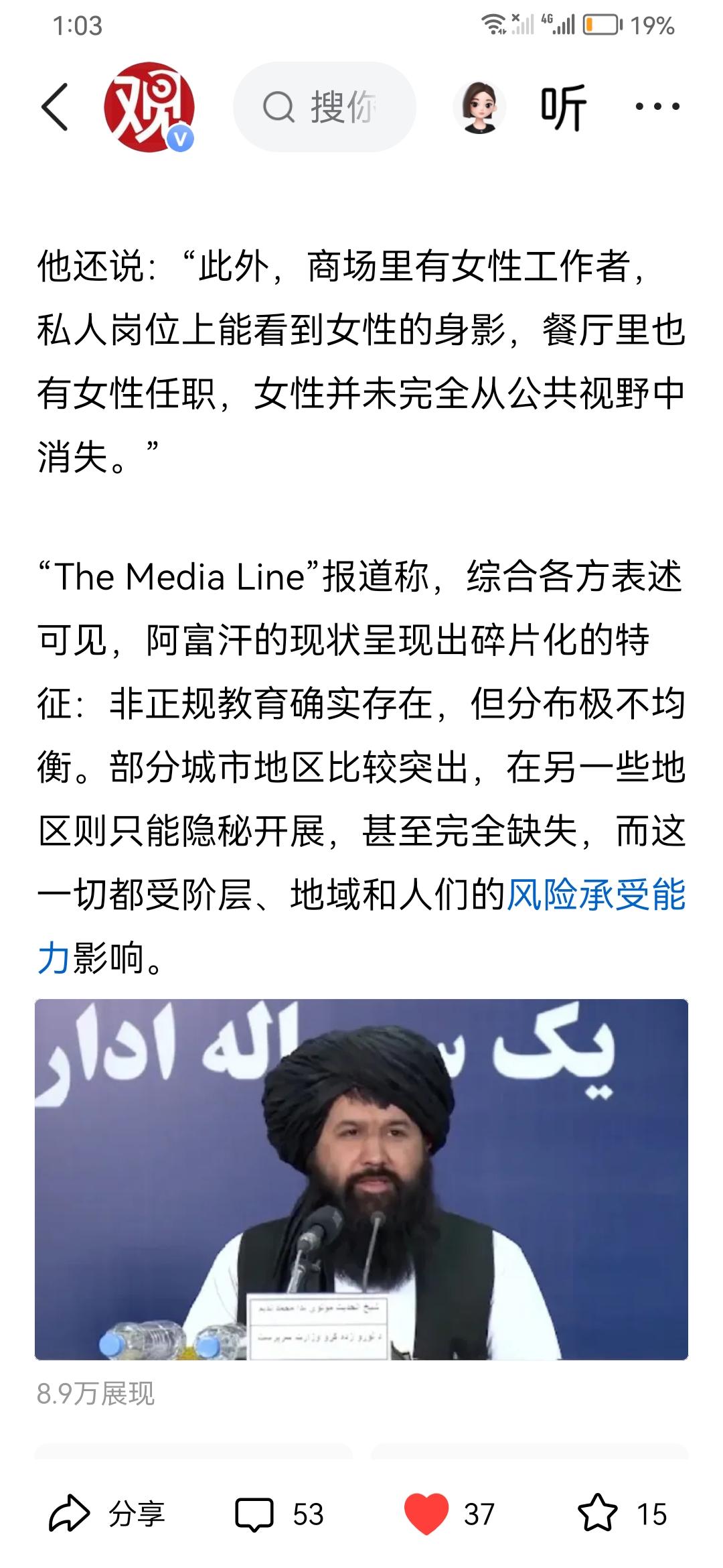 阿富汗塔利班并没有完全禁止女性教育。网上流传的视频截取的是2024年一段视频。该视频误导世界。阿塔进行了纠正。并介绍:阿富汗女童可上小学五年级,之后,女孩寻求非正规教育。在饭店\商场里仍有女性工作,女人并没从公共场合消失。 即使这样,阿富汗女性地位仍是最低的,被剥夺了教育权\工作权。 伊斯兰教义跟不上世界,还活在过去。假若阿女性解放了,获得广泛的受教育权\工作权\选举权,这国将大不一样。 女性将为国家发展贡献力量,国家将有生机与希望,融入现代社会。 美军在阿富汗的失败,使塔利班卷土重来,估计阿富汗很多人希望美军重来。神权世界,没有女人的地位。