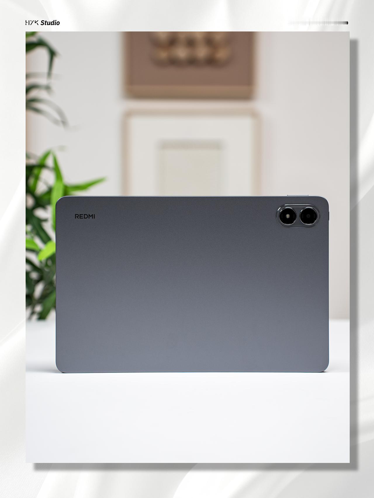 HYK图赏|REDMI Pad 2 Pro 灰色哑光背板,摸起来是磨砂质感,不容易沾指纹,看着低调但是很有质感。这代外观上最明显的变化就是摄像模组,从上代分离的双圆形镜头,改为一体式小巧椭圆设计,摸到镜头这个位置的时候不会硌手。12.1英寸的大屏配上这圆润的边角,整体手感也十分不错。