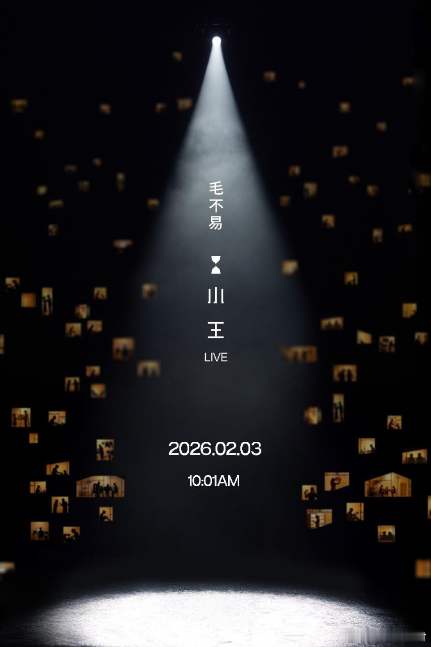毛不易小王Live里的万家灯火 预告海报好有设计感啊!观众组成的灯海像一扇扇窗户,舞台上“小王”灯幕亮起,感觉像在开启一场温暖的聚会,超期待!
