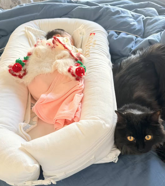 原来阎鹤祥生的是女儿, 小公主一出生就备受宠爱,连家里的猫,都知道“讨好”她!