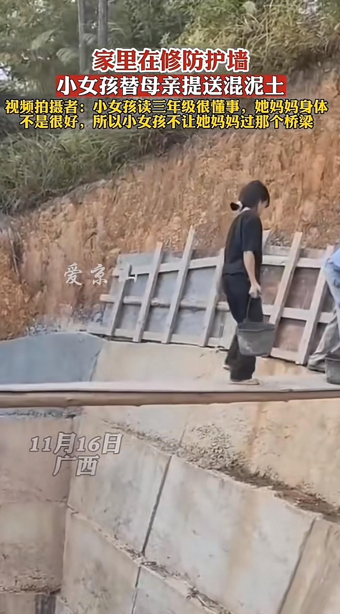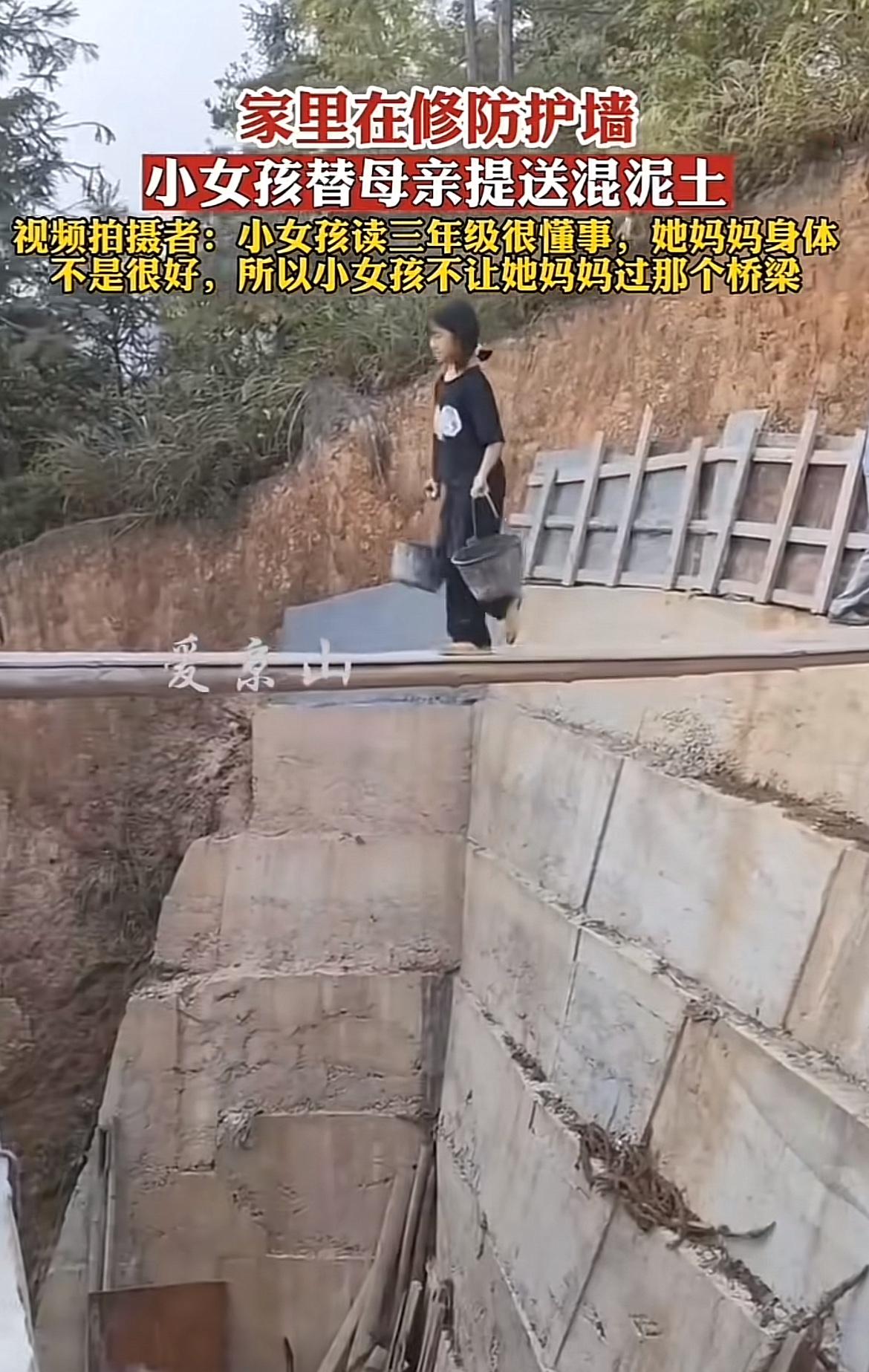 今天刷到个超暖心的视频,一个小小女孩帮妈妈送泥浆。视频里,小女孩费力却又坚定地提着泥浆,一步一步朝着妈妈走去。那小小的身影,在这份任务面前显得有些稚嫩,但她眼神里全是认真。 这么小就懂得帮妈妈分担,真的太懂事了。想想现在很多孩子还在撒娇要玩具,这个小女孩却已经成了妈妈的小帮手。生活中这样的小天使真的能治愈一切,希望她能一直这么善良快乐,也希望她和妈妈的生活越来越好。