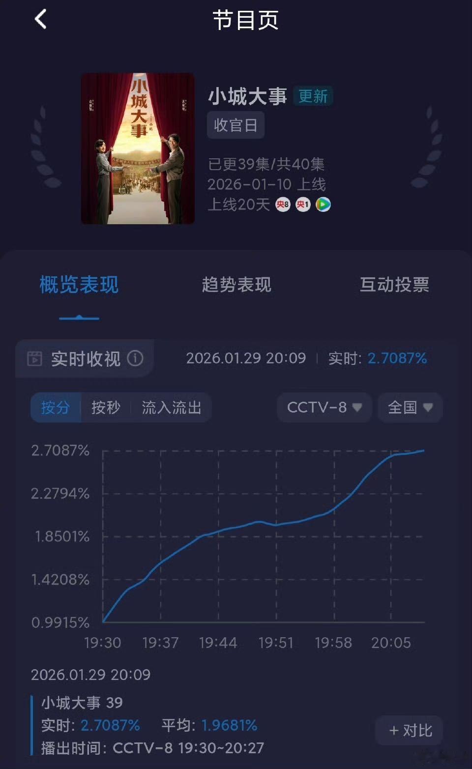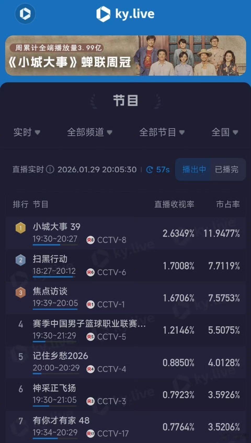 小城大事收视口碑双丰收小城大事 收视持续登顶,口碑全面开花,被观众誉为主流写给人
