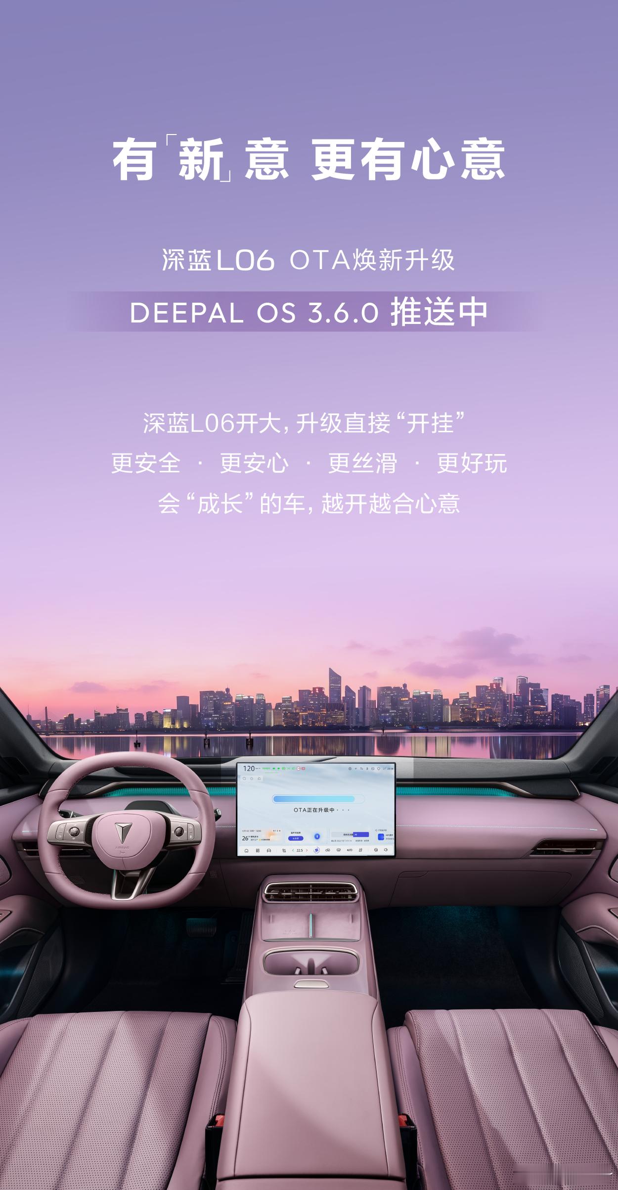 深蓝L06全新OTA升级深蓝L06全新OTA升级,四大升级,让爱车更安心,更安全,更丝滑,更好玩!
