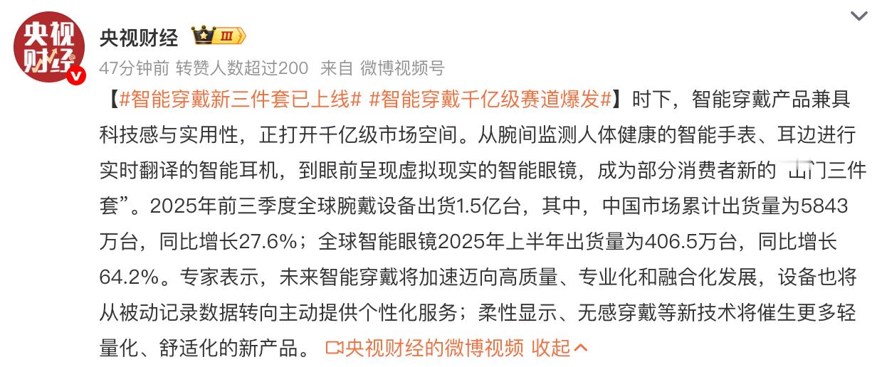 其实想想也正常,现在大家都越来越关注健康,戴个手表就能看心率、记运动,智能耳机、眼镜还能实时翻译,方便日常操作, 智能穿戴千亿级赛道爆发 估计还要更火