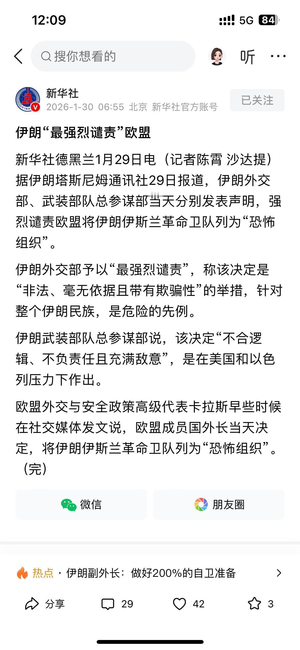 伊朗“最强烈谴责”欧盟,“最强烈谴责”对欧盟伤害性不大,侮辱性极也不强,目前的伊朗对欧盟把伊斯兰革命卫队列为恐怖组织,伊朗也只有发出“最强烈谴责”了。 毕竟现在美国大批舰队对伊朗形成大军压境的情况下,虽然特朗普嘴上说了暂时不动手,不代表他一直不动手,只要美国的舰队一直在伊朗周边海域,毕竟伊朗的当前大敌是美国和以色列,伊朗对其他的对手也只有“最强烈谴责”了。
