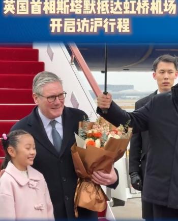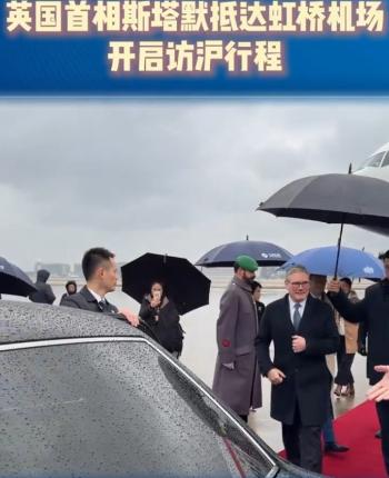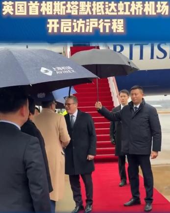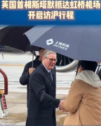 1月30日下午!英国首相斯塔默已经抵达上海虹桥机场! 据悉,英国首相斯塔默已经在北京停留两天时间了,在上午的时候,他还亮相中行总部参加一个商务论坛,没想到的是下午,英国首相斯塔默已经抵达上海了。 从曝光的画面我们可以看出,当时的上海还下着小雪,天气也是非常冷,可是英国首相斯塔默并没有穿厚羽绒服,就穿一件长款风衣搭配白色衬衫,记得英国首相刚来的时候也是这样的造型,可以说斯塔默非常抗冻。 值得一提的是,斯塔默抵达上海的时候也是受到了高规格的欢迎仪式,在现场依然有红毯和献花的小朋友以及欢迎人员。当时献花的小朋友还送斯塔默一大束鲜花。斯塔默也非常开心,还和献花小朋友合影留念。