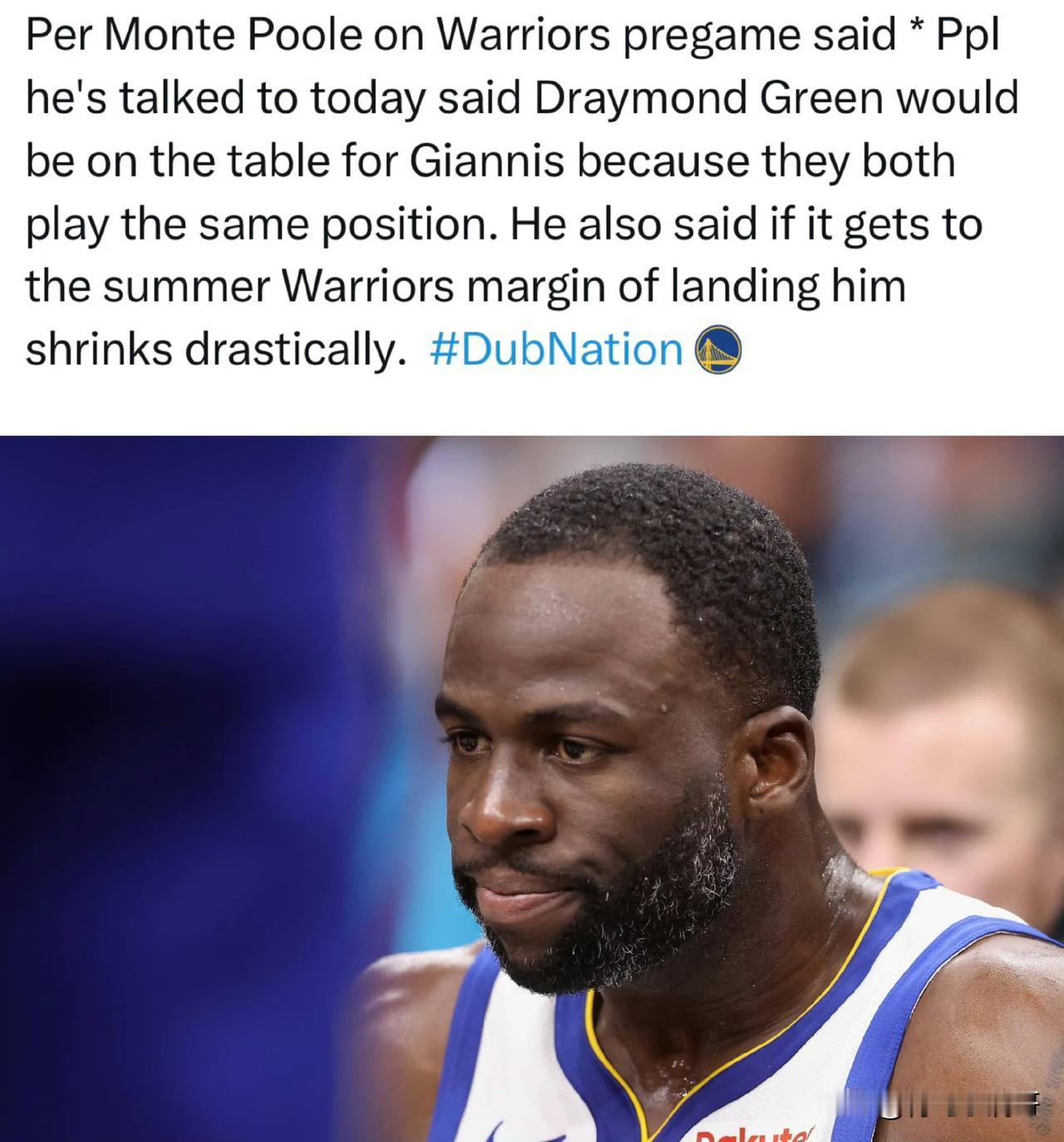 追梦-格林被纳入字母哥交易!!!勇士死亡五小阵容只剩库里! 根据记者Monte