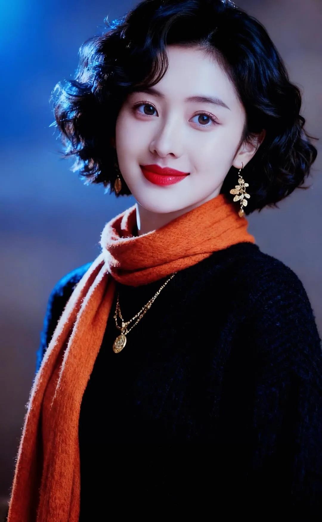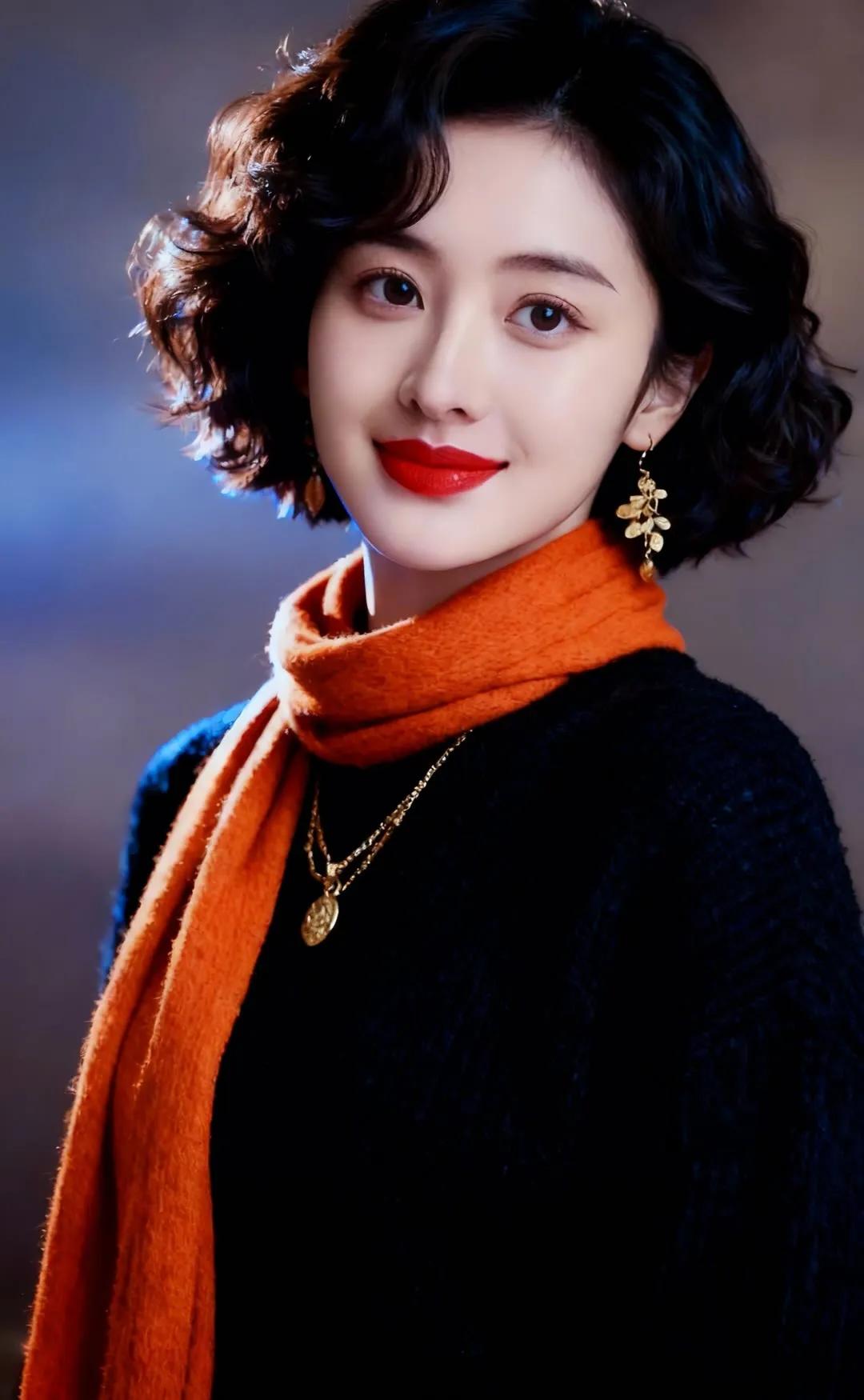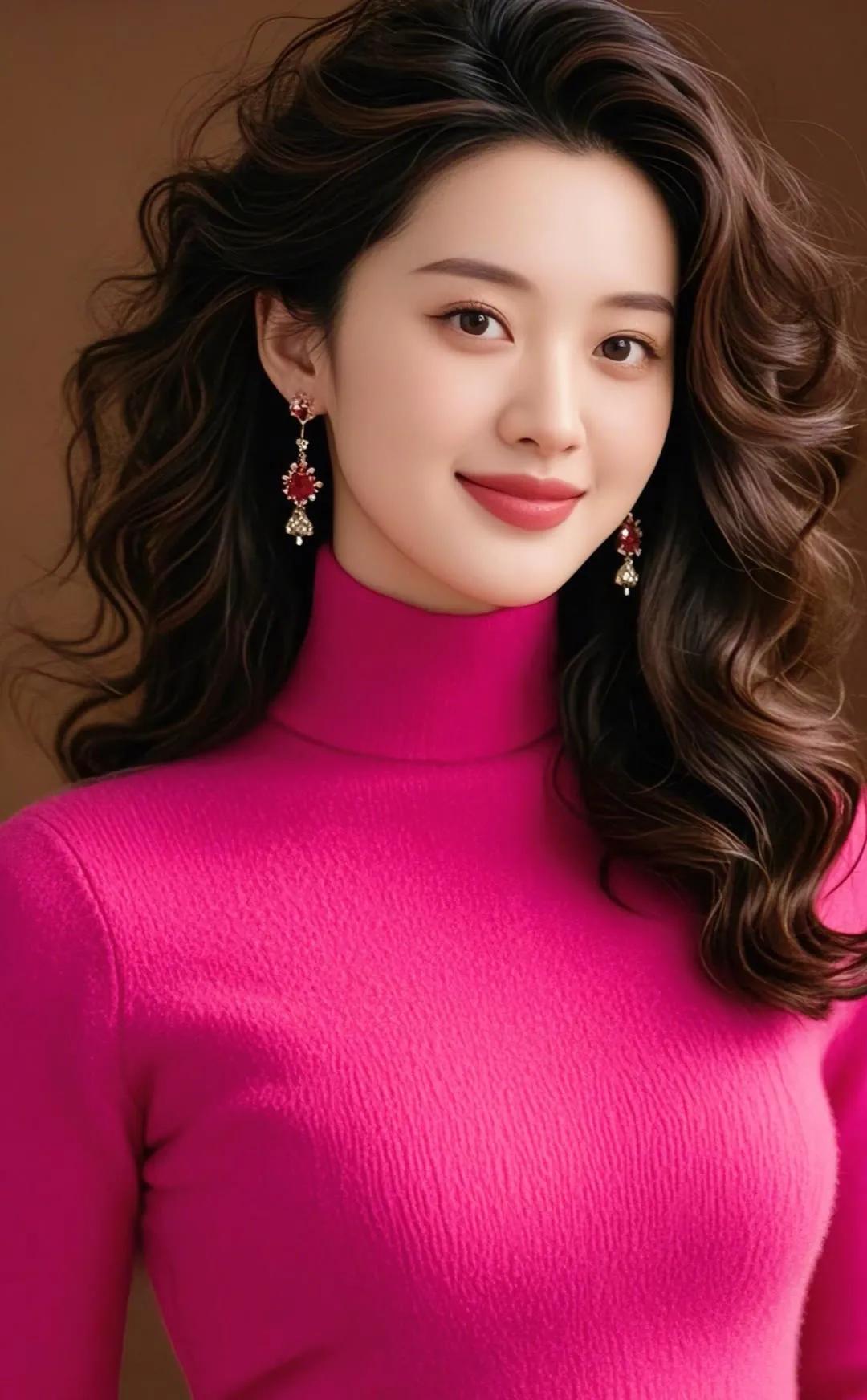 温柔微笑,自然卷发,甜美动人!😊✨