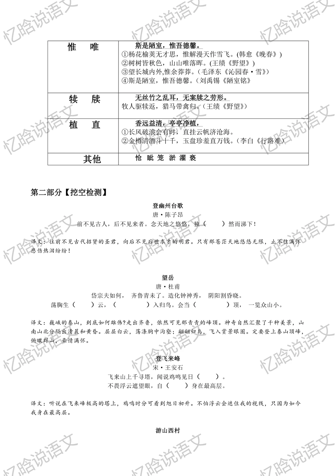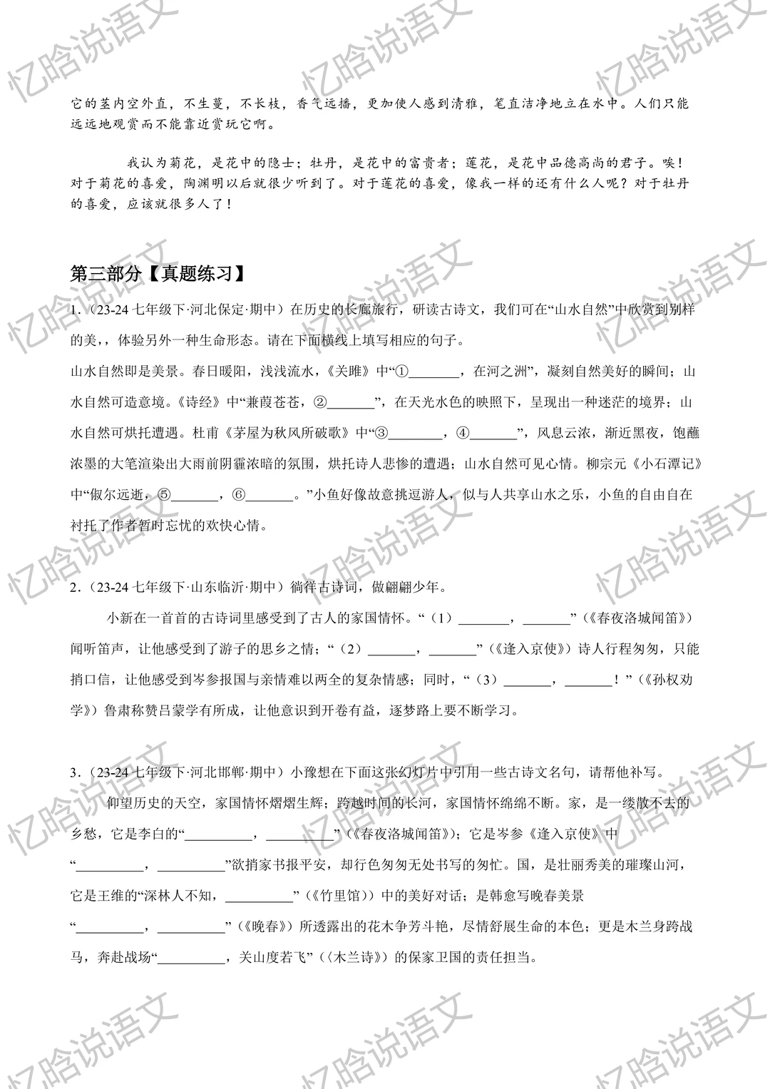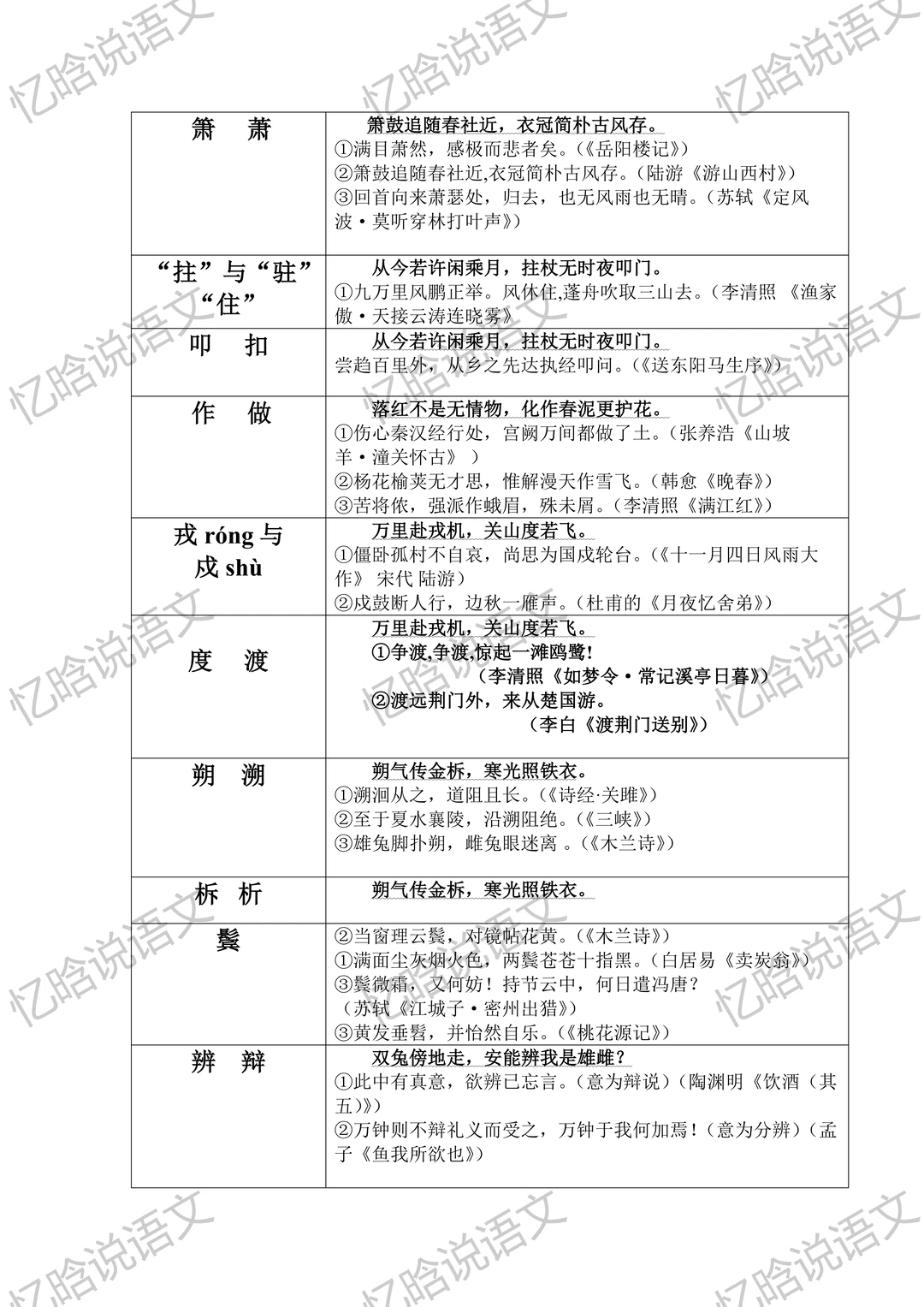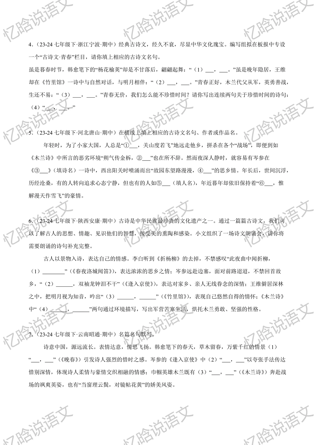 寒假预习必备,七年级下册古诗文默写重点字词