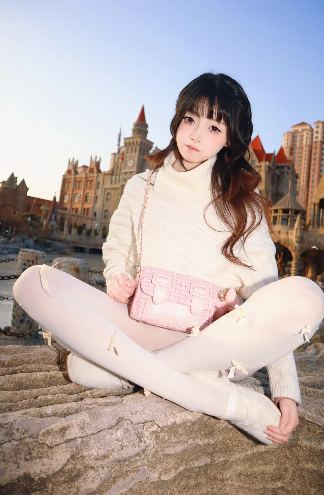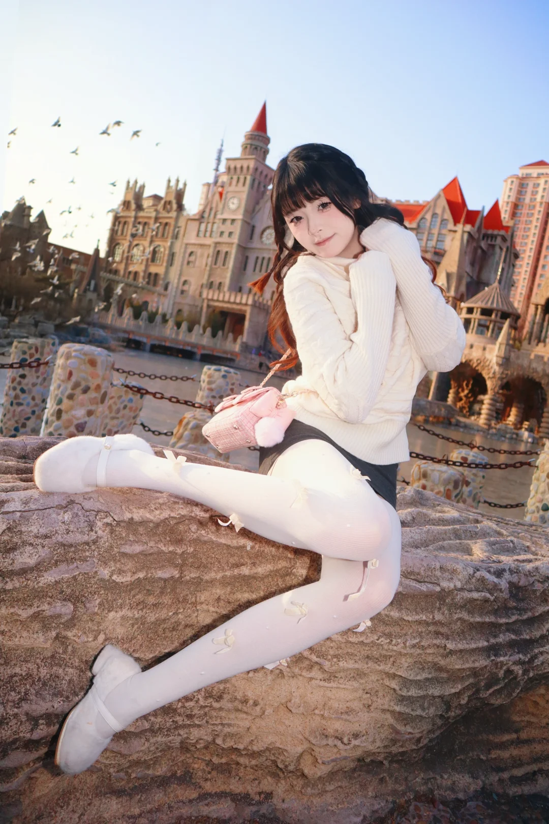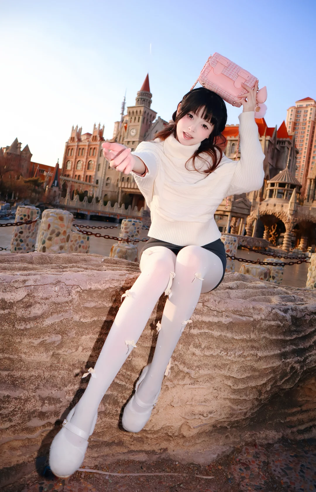 优雅白裙,粉色花海,仙气飘飘的少女一眼沦陷的神级美图