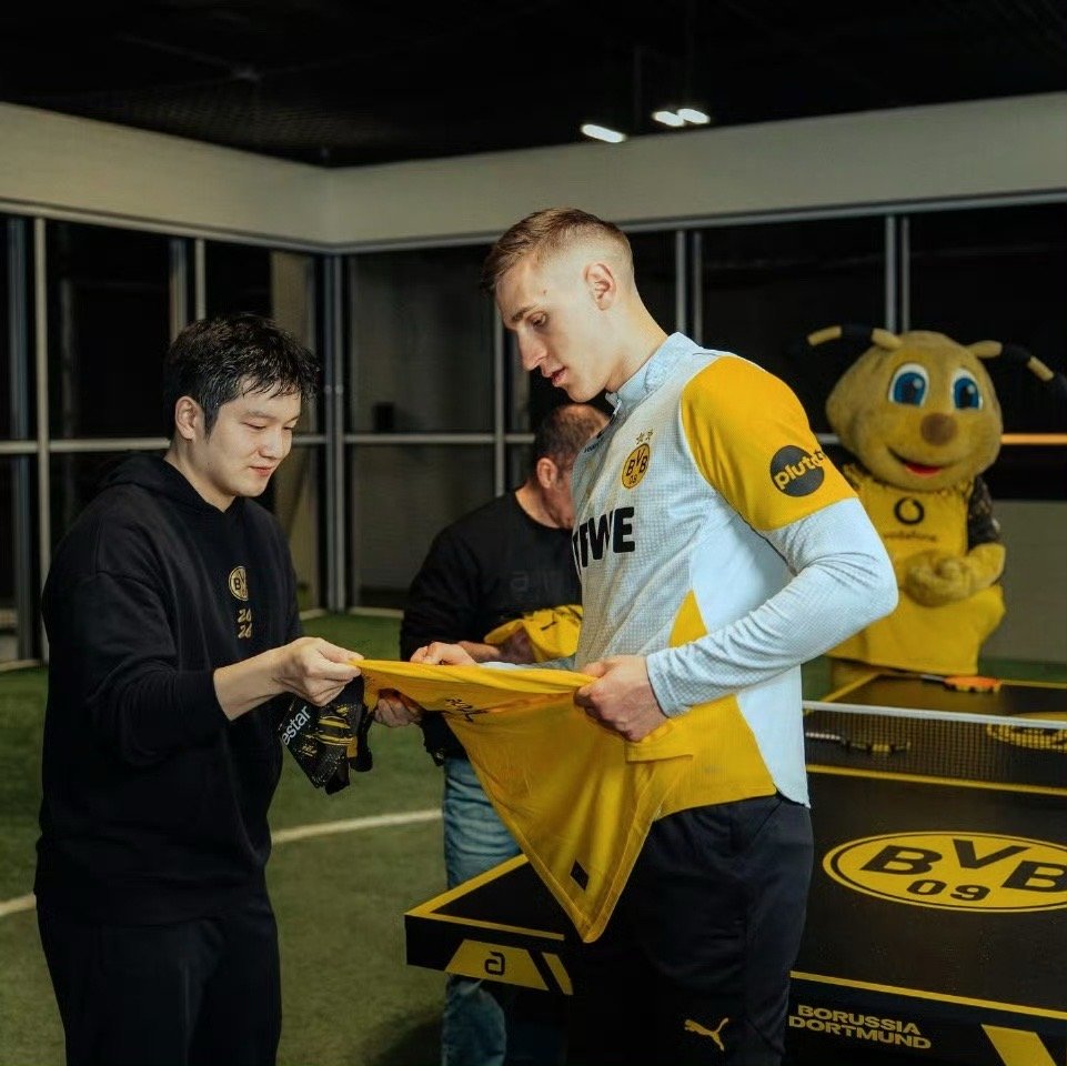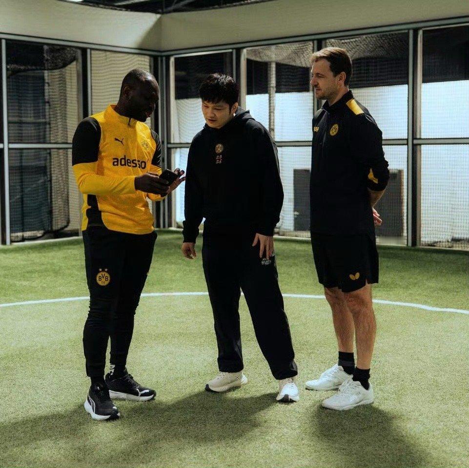 波尔说樊振东是年轻足球天才 波尔社交媒体更新:昨天上午和多特蒙德帅气小伙子们一起打乒乓球和踢足球,真是太棒了!特别感谢 Nico Schlotterbeck, Felix Nmecha, Maximilian Beier , 还有我们的年轻足球天才樊振东。😉⚽️🏓热搜多元内容创作计划