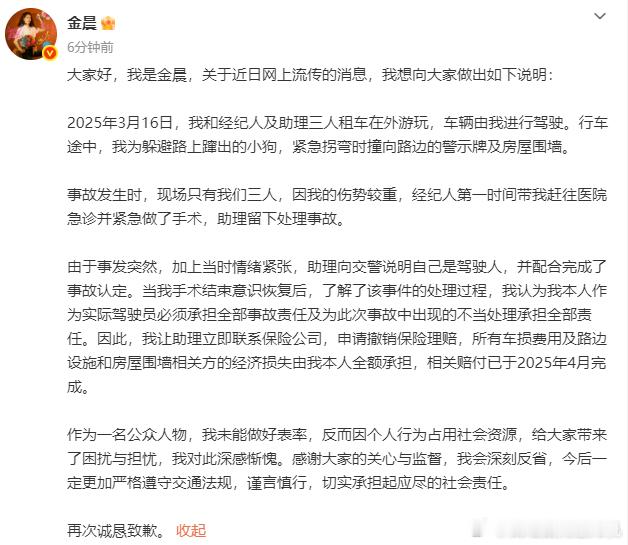 金晨晒脸部受伤照回应金晨回应肇事逃逸事件金晨晒脸部受伤照回应,金晨回应肇事逃逸事件,咱就说看样子伤的不轻啊当时,回应解释清楚就好了~ 警方通报金晨事件