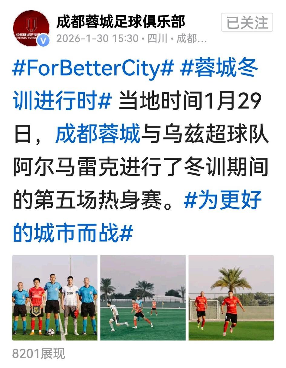 即便有人不高兴,也还得吐槽蓉城头条号的水平。 今天报道与阿尔马雷克的热身赛,整个“乌兹超”出来就算了,上这3张图片不仅拍的一般,阵容、人员一点也不明。最离谱的是,居然不报比赛结果,让人不得不怀疑小编没有学过传媒和新闻。 以往这号很有吸引力,报道动态、赛事图片丰富生动还极有个性,观点导向鲜明又堂堂正正,文笔动感十足又富有激情。显然,蓉城不仅球队大换血,连头条小编也可能搞一朝天子一朝臣。拜托,换人也要有基本的专业水平。