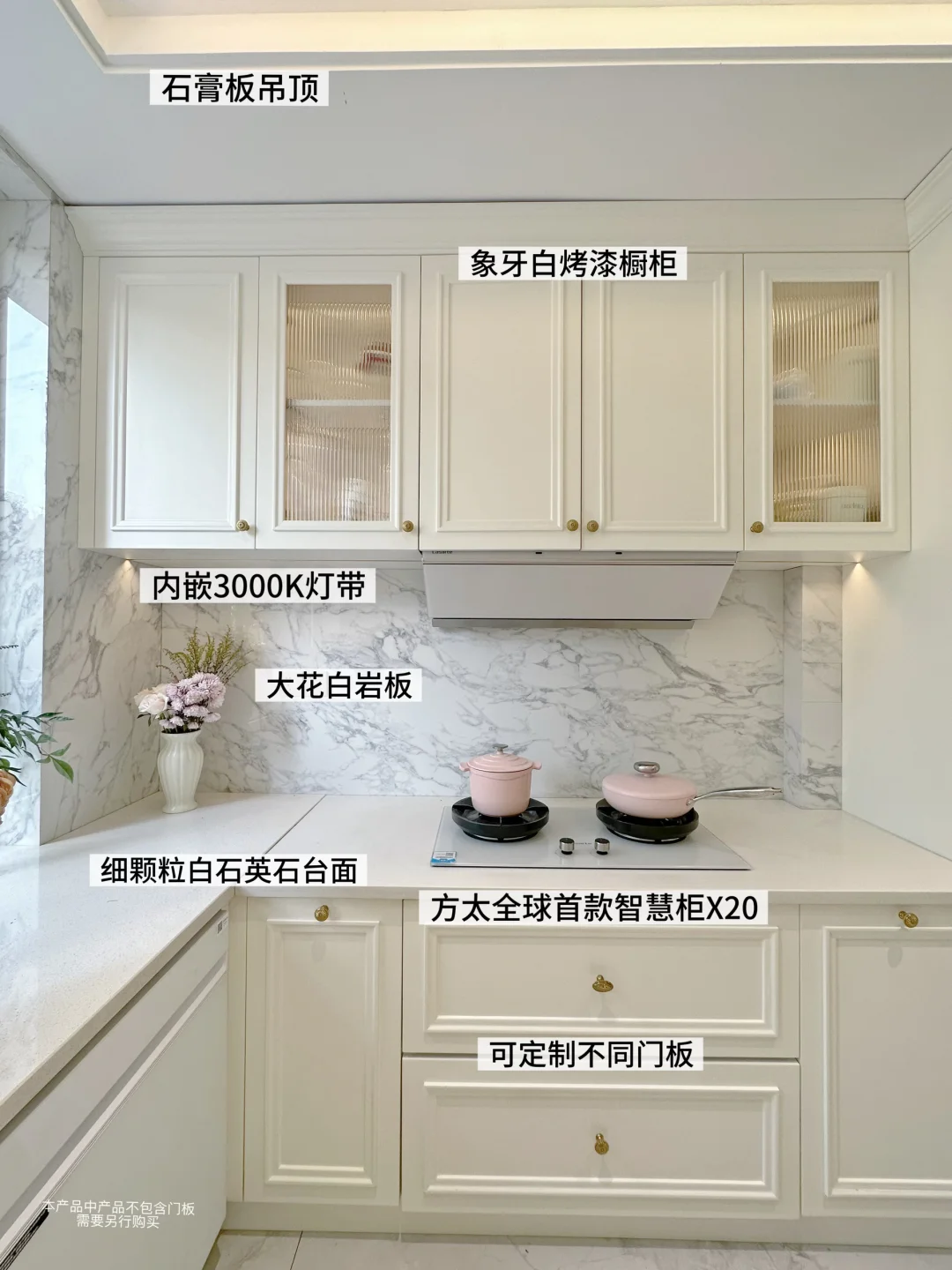 🍃橱柜做浅⾊烤漆柜⻔,不沾油污⼜不⽤打理,⼏个⽉不擦也跟新的⼀样