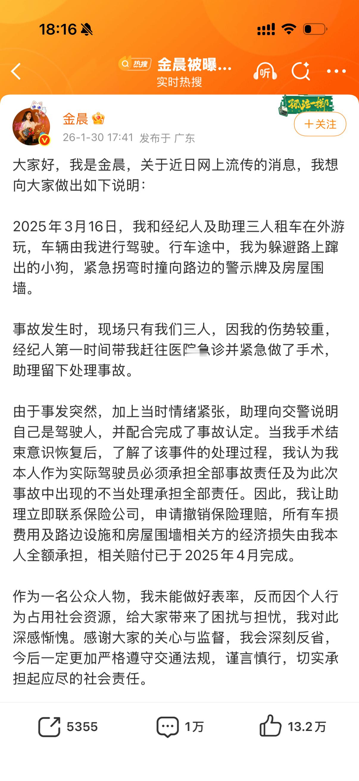 至于助理谎称自己是驾驶员,估计是怕对明星影响不好,但后续也没有骗保,挺简单一事,还闹上热搜。这应该是谁想要整金晨吧?