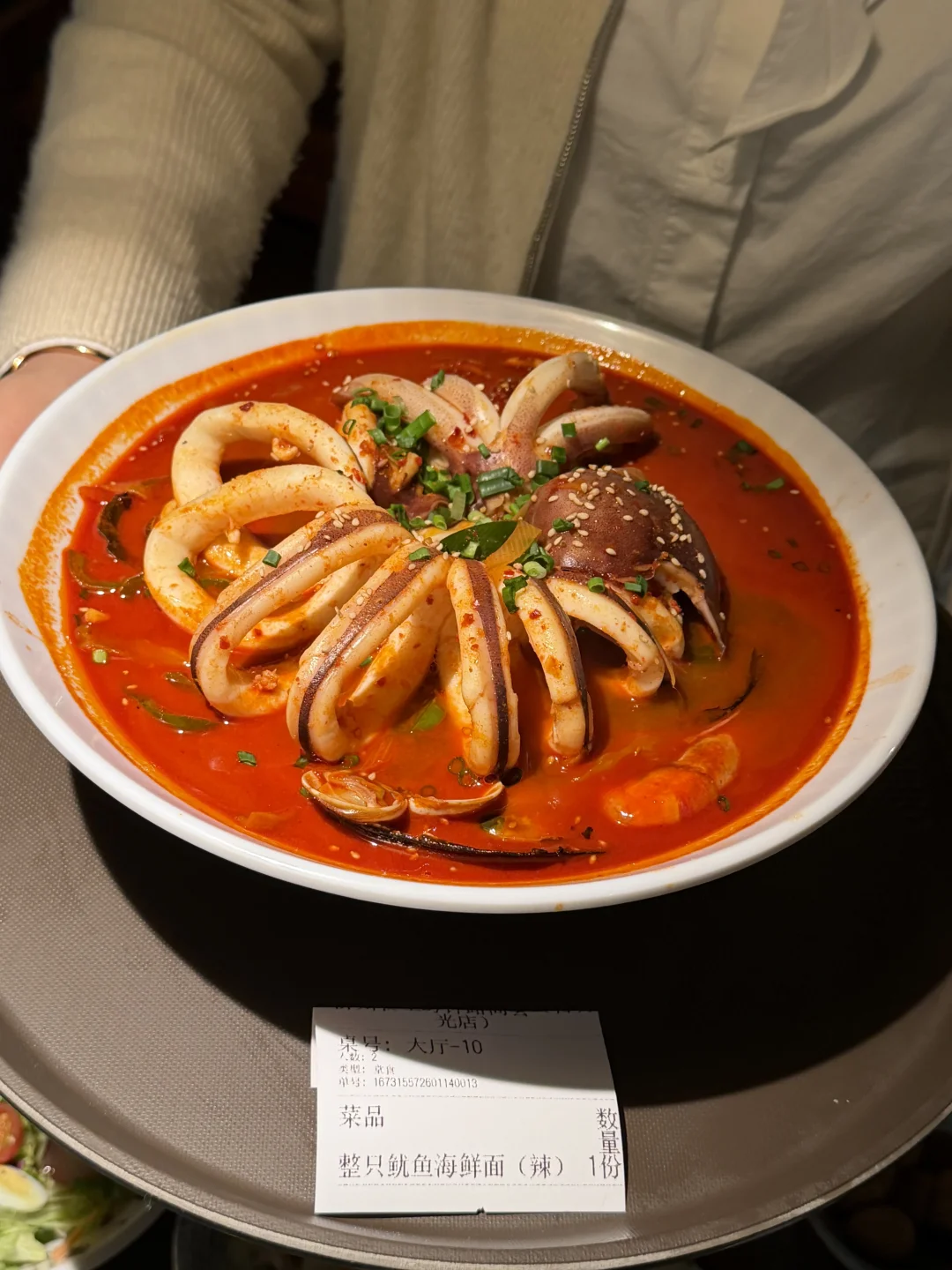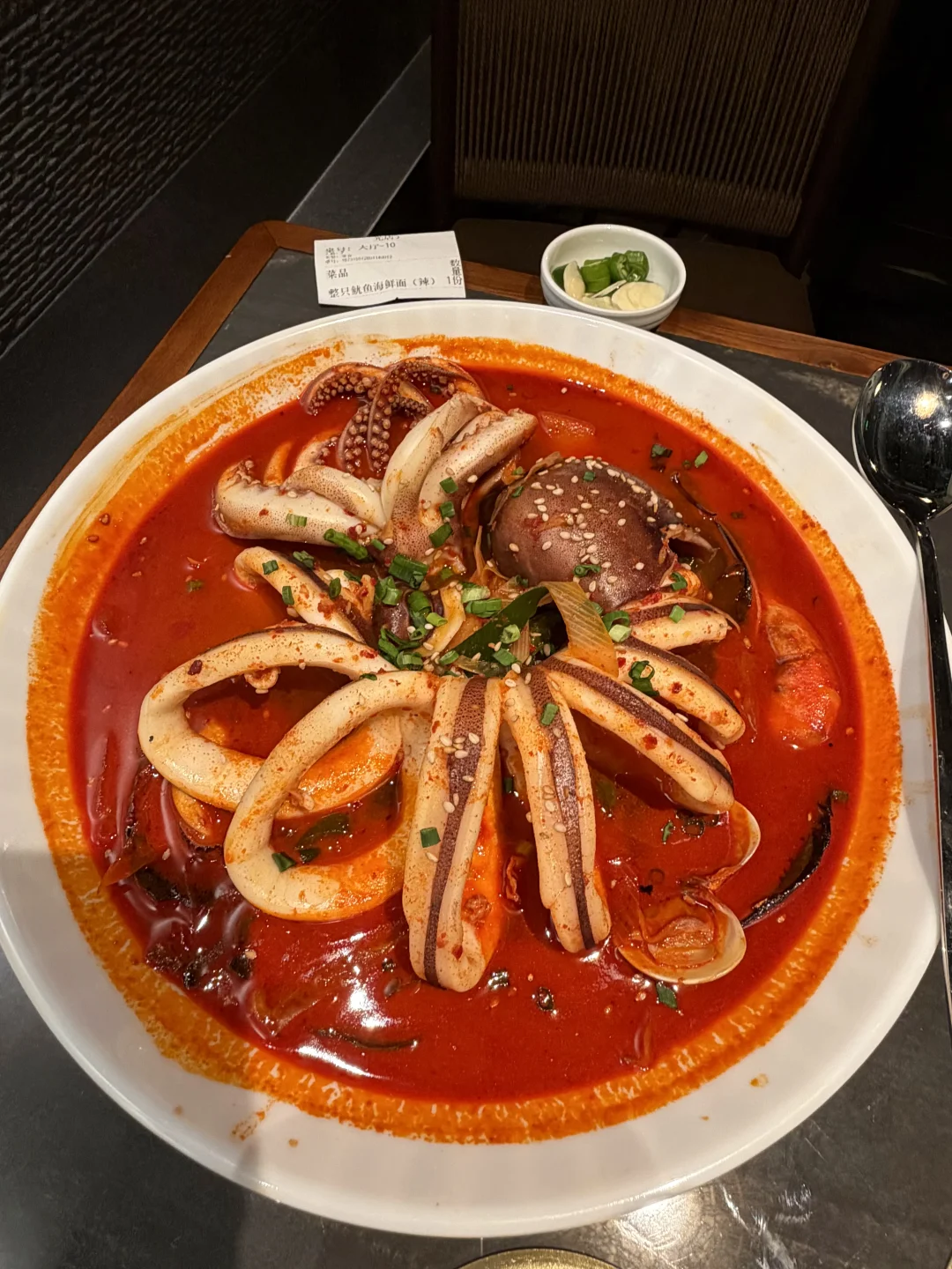 上海经常两个人来吃的……整只辣鱿鱼海鲜面!