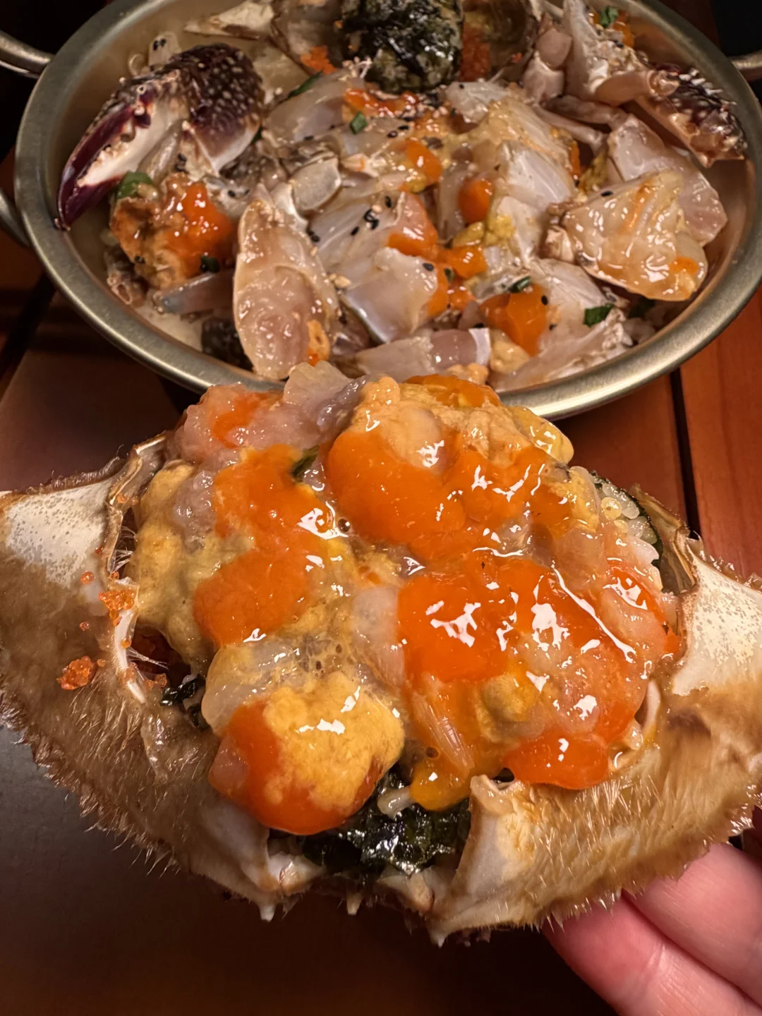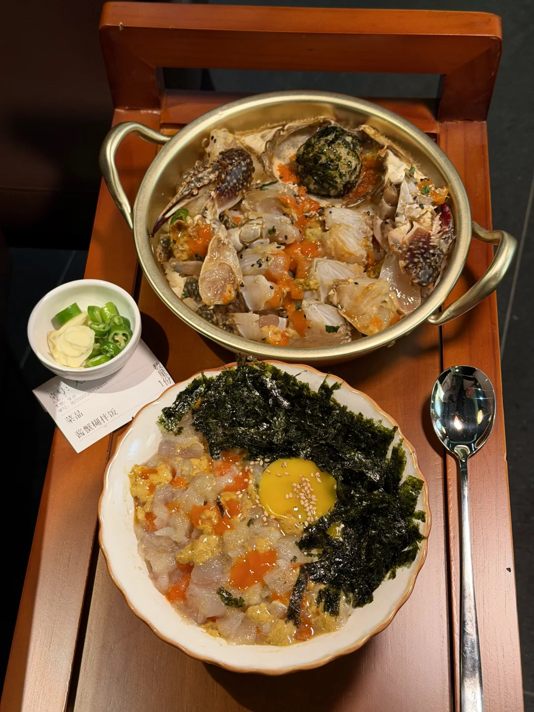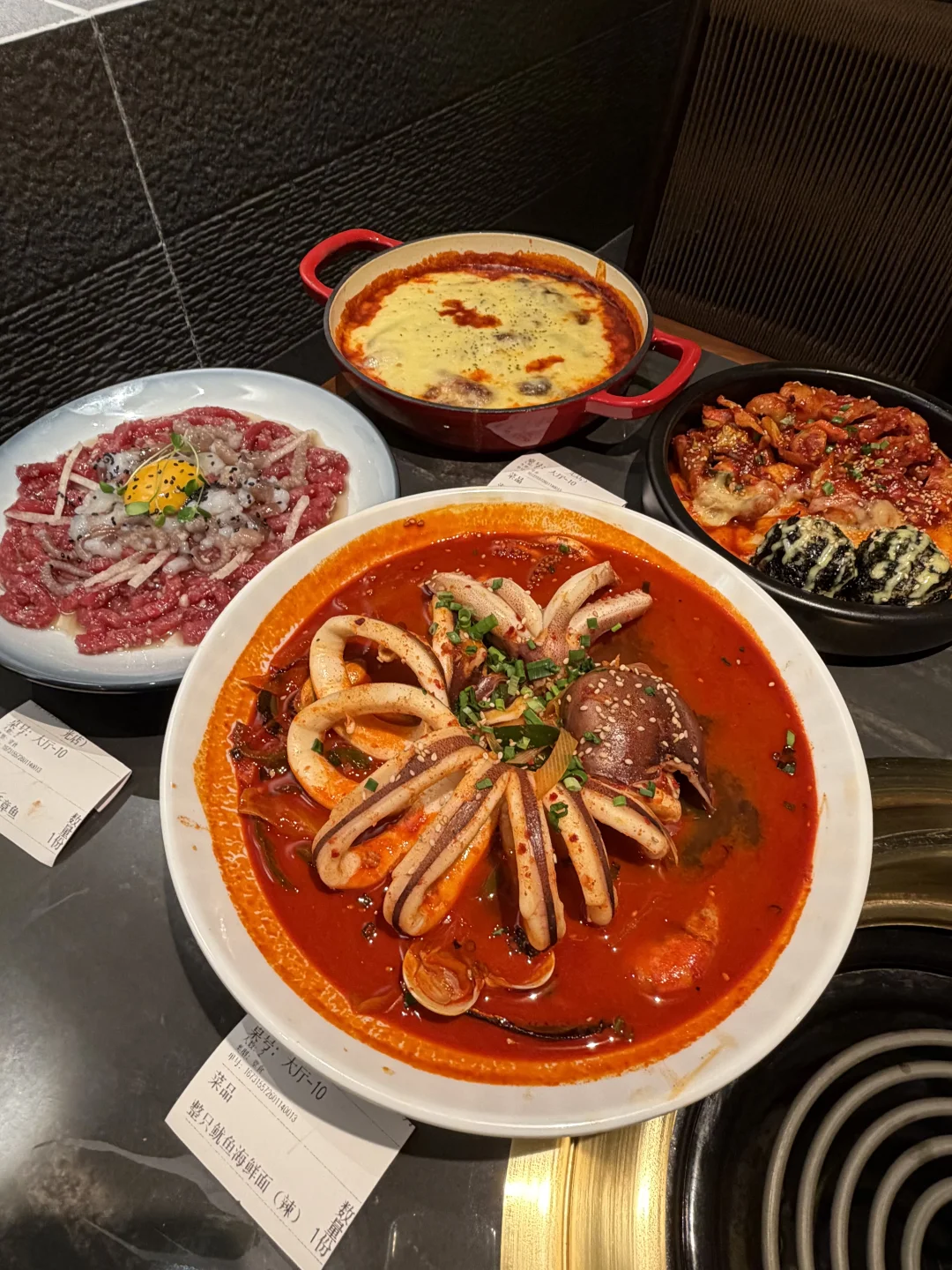 上海,终于吃到了!整只辣鱿鱼海鲜面!! 酱蟹和烤肉也好好吃!韩国小帅哥亲自帮烤! 很适合二人食约会!