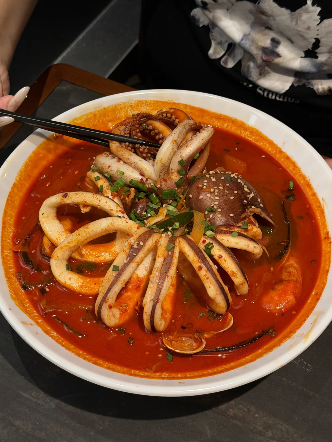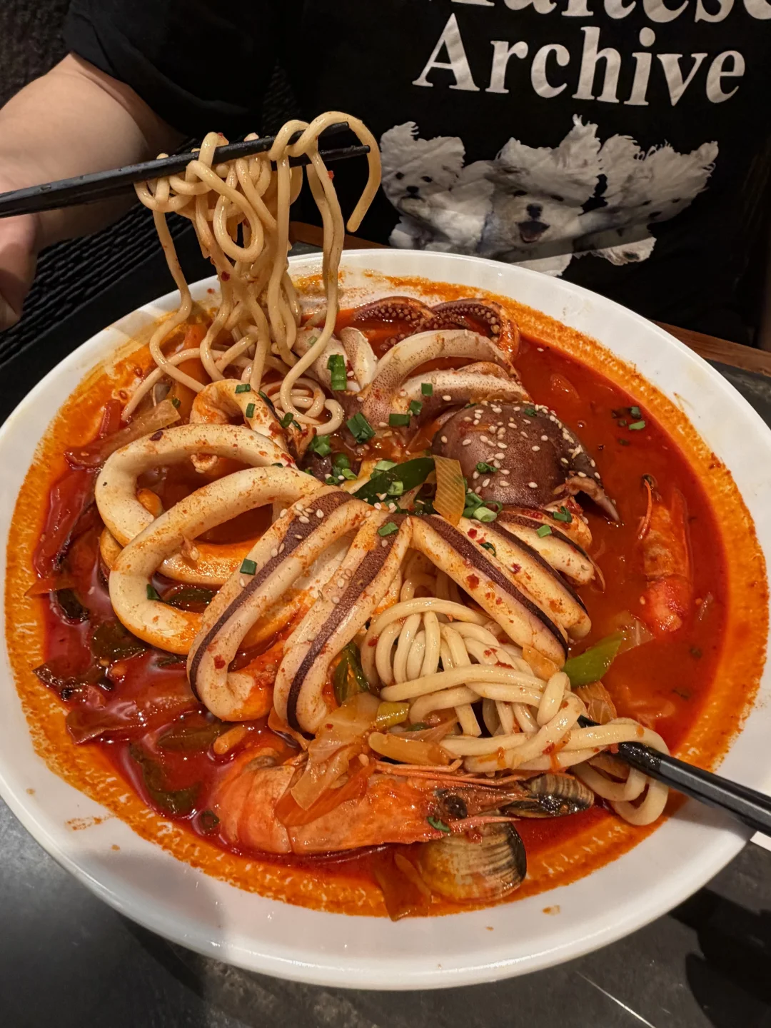 上海经常两个人来吃的……整只辣鱿鱼海鲜面!