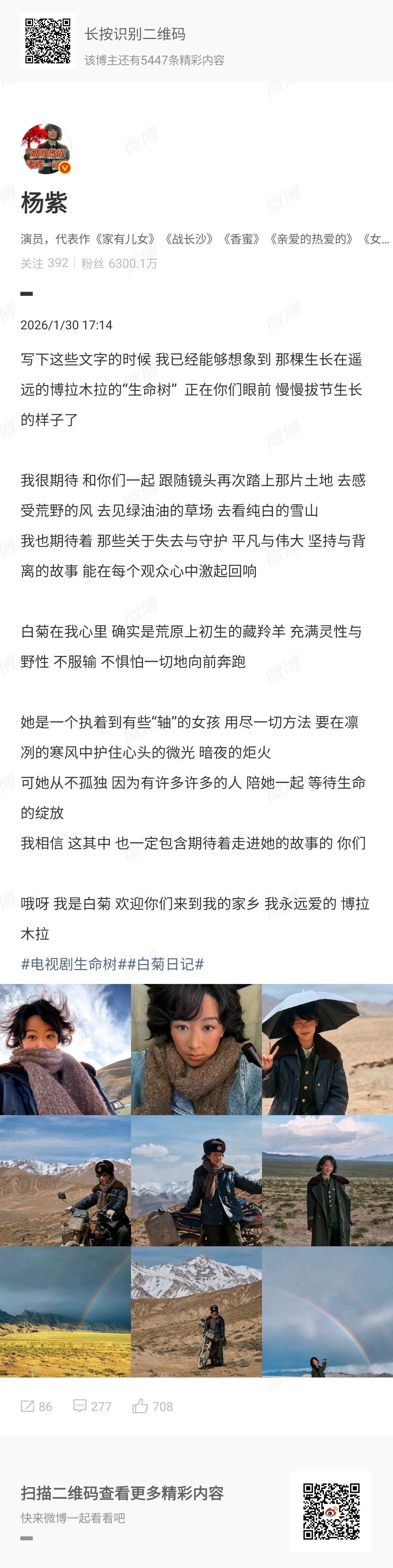 杨紫生命树开播小作文杨紫眼中的白菊 杨紫《生命树》开播晒小作文,畅聊自己眼中的白菊,一起听白菊讲述她与她家乡的故事杨紫