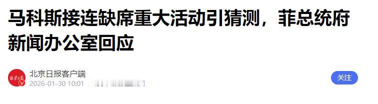情况不对,菲律宾总统确认病倒!中国代表团已抵达菲律宾 1月29号菲律宾星报对外发布了消息,声称最近这段时间菲律宾总统小马科斯从来没有公开露面,只是在一些视频和照片中出现。目前这位菲律宾总统已经连续缺席了多个重大活动,这种情况显然不对头。外界传言,总统的身体已经出现了问题。 对此菲律宾的总统助理雷克托在接受采访的时候表示,小马科斯已经被确诊患上了憩室炎,不过再有一周的时间就会康复。但是菲律宾星报则声称,一些报道总统行踪的记者已经收到了匿名信息,说总统的健康状况其实是迅速恶化,已经没有办法履行职责了。一时之间,菲律宾国内人心惶惶。 要知道,小马科斯之前可是出了名的“工作狂”,经常密集奔波于各类工程落成、外交活动现场,可从1月22号之后,他就彻底“消失”在了公众视野里,原本该亲自出席的杰出公务员颁奖典礼、东盟旅游论坛开幕式,全靠总统助理雷克托或夫人丽莎代劳,这种反差太大,也难怪谣言会趁机发酵。 其实小马科斯早在1月22号就曾发过一段一分钟视频,画面里的他穿着休闲服,还和爱犬轻松互动,神情看起来并不凝重,他主动坦言自己得了憩室炎,还笑着说这是常见疾病,让大家不用过度担心,甚至暗指别有用心的人别借机炒作。 可这段视频不仅没平息疑虑,反而有记者收到匿名消息,说他的病情已经出现穿孔风险,健康状况迅速恶化,根本无法履行总统职责,更有虚假医疗报告在社交媒体上流传,谎称他还患上了动脉粥样硬化等多种疾病。 面对愈演愈烈的谣言,菲律宾官方接连出手辟谣。总统助理雷克托在采访中特意提到,自己之前也得过两次憩室炎,每次都只休息了一周就康复了,他坚信小马科斯也能如期恢复。 菲律宾总统府更是直接驳斥匿名消息和虚假报告,还发布了一段8分钟的探访视频,画面里小马科斯精神饱满,和工作人员正常交流,直观证明自己状态良好。 就连为他诊疗的圣卢克医疗中心也发布声明,明确表示流传的医疗报告是伪造的,强调医院绝不会泄露患者隐私,那些未经授权的信息全是无效编造。 大家可能会疑惑,为什么一场普通的养病风波,会让菲律宾国内人心惶惶?其实核心还是总统健康直接关系到国家运作,再加上菲律宾近期政坛并不平静,1月份已经有两起针对小马科斯的弹劾案,反对派本就盯着他的一举一动,这次他生病缺席活动,自然给了对方借题发挥的机会,不少人借机质疑政府不够透明,甚至呼吁他下台,这也让民众的担忧雪上加霜。 不过从目前的情况来看,小马科斯虽然减少了公开露面,但并没有停止工作,总统府透露,他一直在总统府处理行政事务、主持内部会议,并没有真正“缺位”。 就在菲律宾国内被总统健康传闻搅得沸沸扬扬的时候,另一件值得关注的事发生了——1月29号,中国代表团如期抵达菲律宾宿务,此次代表团由我国外交部边海司司长带队,菲方则派出副部长及亚太司司长对接接待。 这个时间点中国代表团到访,是不是和小马科斯病倒有关?其实不然,结合中菲近期的互动来看,这次访问是双方早已约定好的,核心是围绕两国共同关心的涉海问题坦诚交流,经过当天的会谈,双方也达成共识,同意继续通过外交渠道保持沟通,推动双边关系平稳发展。 小马科斯的健康风波,一半是身体亮红灯的无奈,一半是政治博弈的暗流涌动,而谣言之所以能快速传播,本质上还是民众对国家稳定的担忧。 不过从官方发布的信息和医院的澄清来看,小马科斯的病情确实在稳步好转,按照雷克托的说法,再过一周左右就能康复回归公众视野。 而中国代表团的如期到访,也从侧面说明,中菲双边合作并不会因为菲律宾国内的临时风波受到影响,双方都有维护地区和平、推动友好合作的诚意。 目前来看,菲律宾国内的人心惶惶,随着官方辟谣的不断推进和总统康复进度的公布,已经慢慢有所缓解。 后续我们只需要关注两点:一是小马科斯的康复情况,能否如期回归履职;二是中菲此次会谈的后续落实,双方能否在相关领域达成更多共识。 毕竟对于菲律宾来说,总统健康稳定、国家平稳运行才是重中之重,而对于中菲两国来说,保持良性互动、互利共赢,才是双方最应该追求的目标。