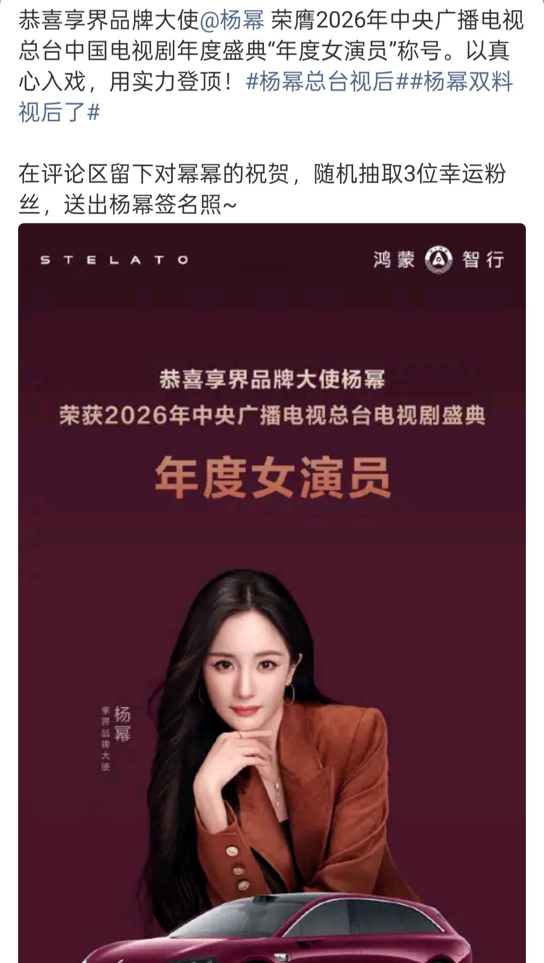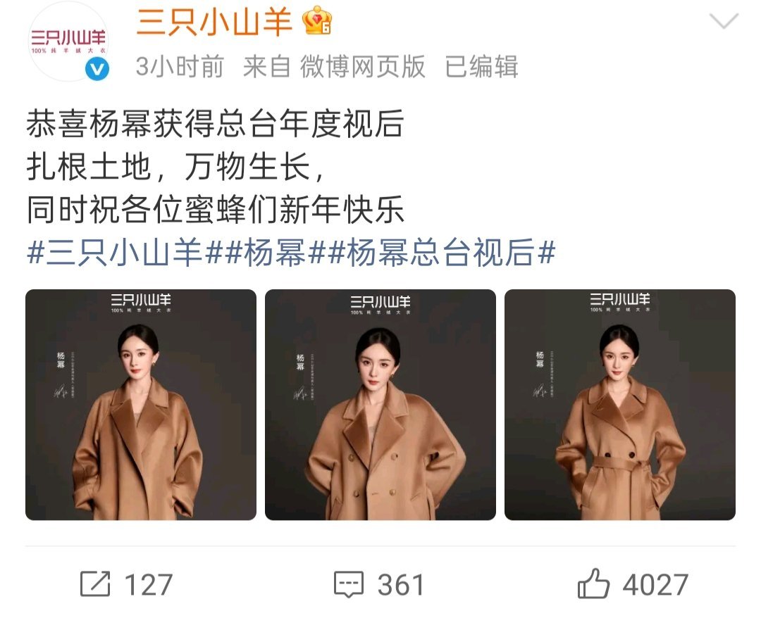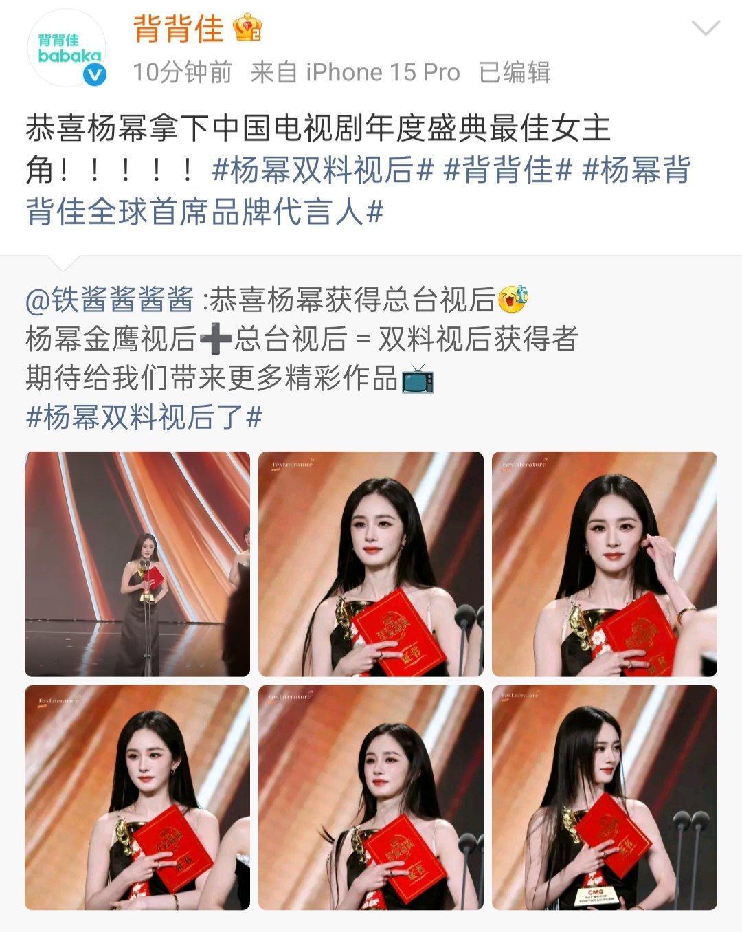 贵州卫视连发三条微博庆祝杨幂拿下总台视后!