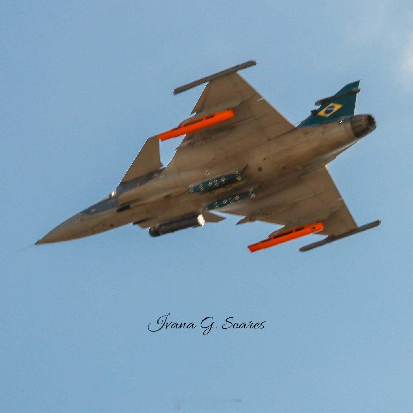 烽火问鼎计划巴西空军F-39 “鹰狮”战斗机武器集成。FAB 4100中队正在进行空对地武器试验。试验内容包括激光制导炸弹和非制导炸弹,以及LITENING目标指示吊舱。5L和5R挂架已安装挂载点。橙色吊舱为摄像机。 每天认识一件兵器