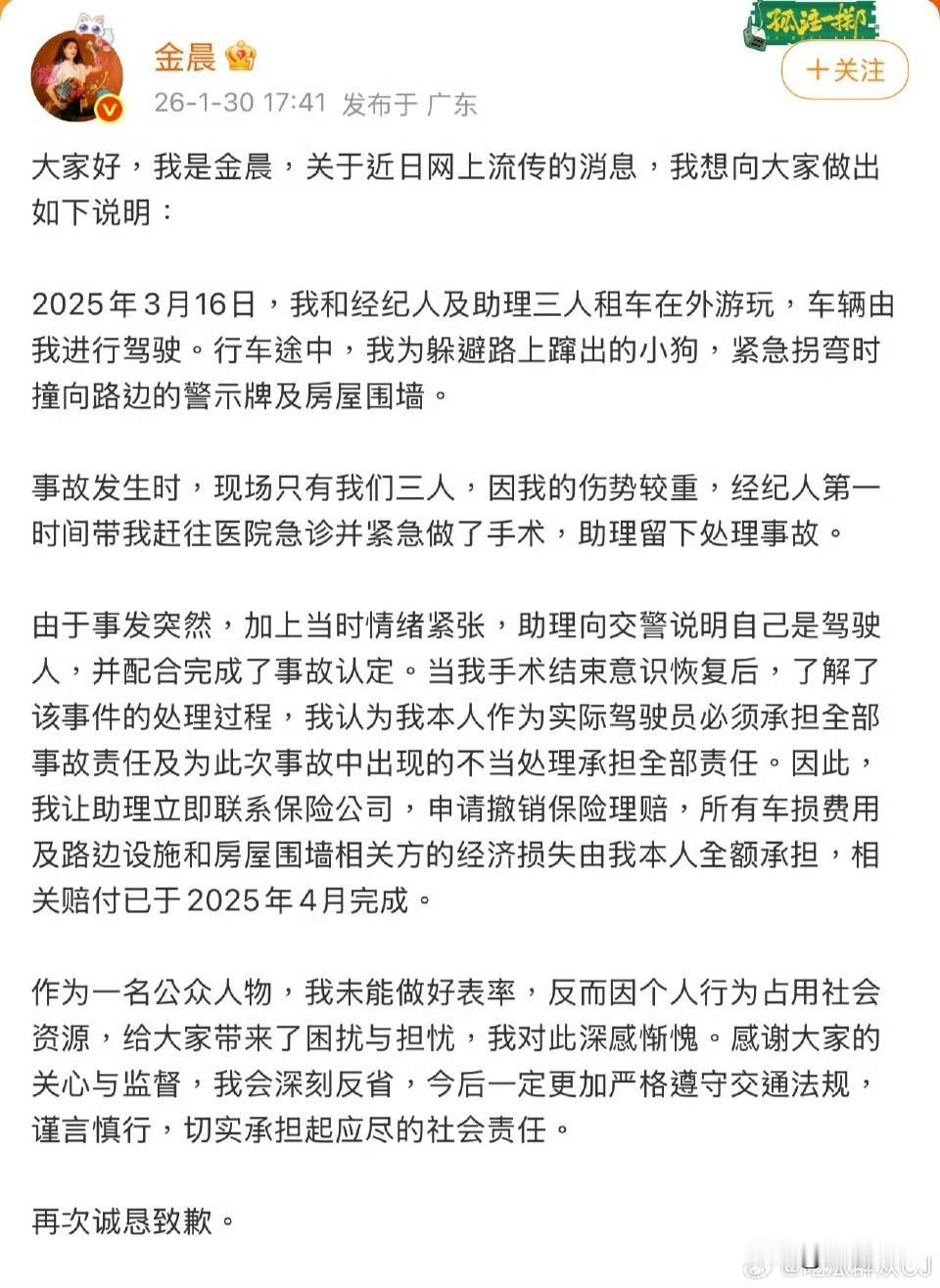 某些人别逼逼了,人家帽子叔叔怎么可能因为一个艺人作假? 这都什么年代了,居然还有人在质疑是不是金钱的力量显现了,拜托长点儿脑子可以么,人家是公信力背书,后面有好多双眼睛盯着,你以为给点儿钱就可以了事? 人家做了手术,积极赔偿,主动认错,一切都整完了,现在拿出来说事儿,金晨这是得罪谁了?