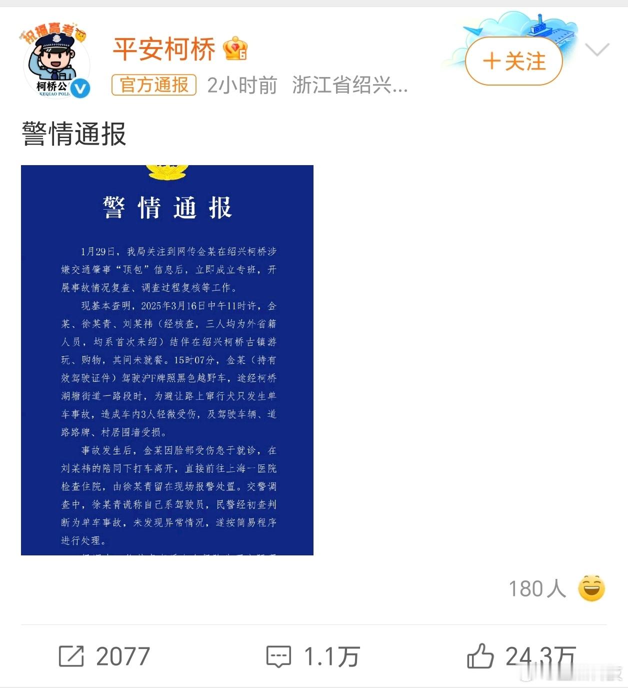 警方通报金晨事件好了,金晨塌不了了看了一下全文和警方的通报,没有太大问题,好能正常经营,品牌和剧应该都安全了!!