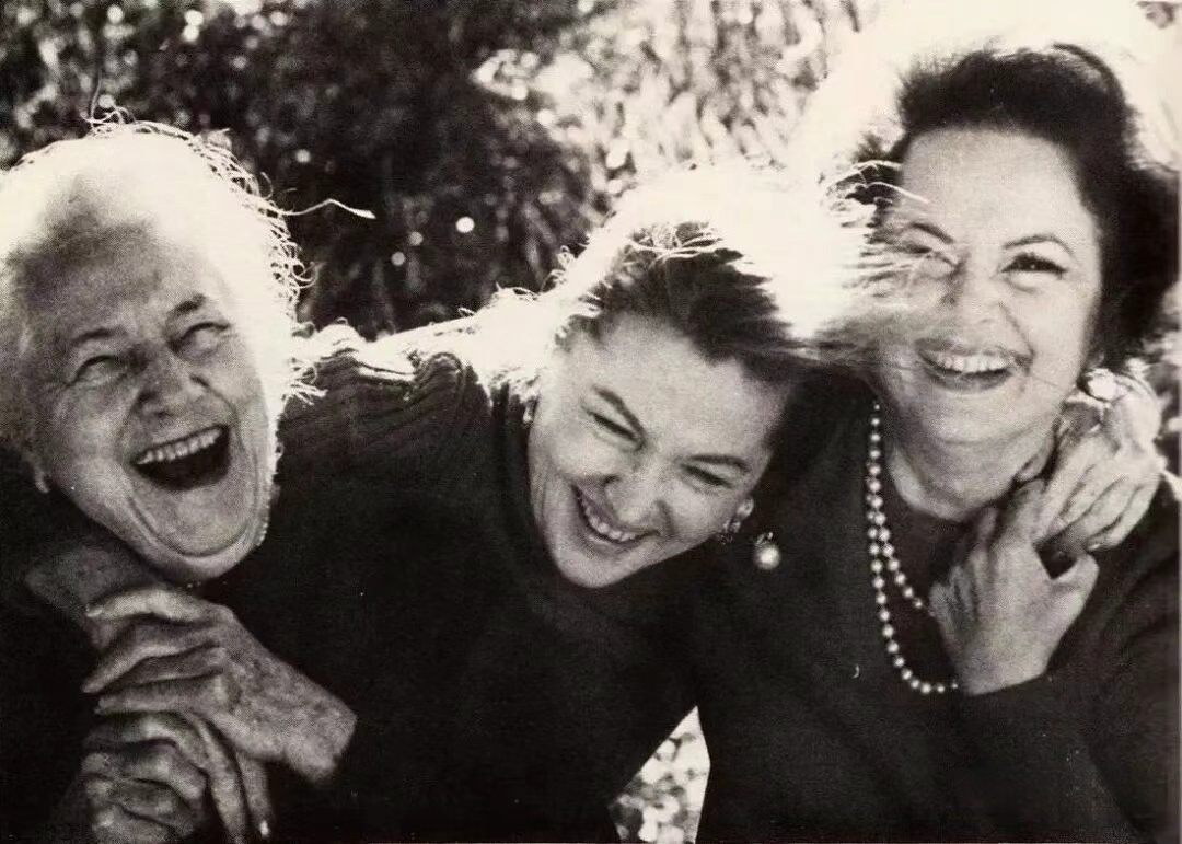 【来自投稿】两位奥斯卡影后奥利维亚·德·哈维兰(右)、琼·方登(中)和她们的母亲莉莲·奥古斯塔·鲁斯的合照。