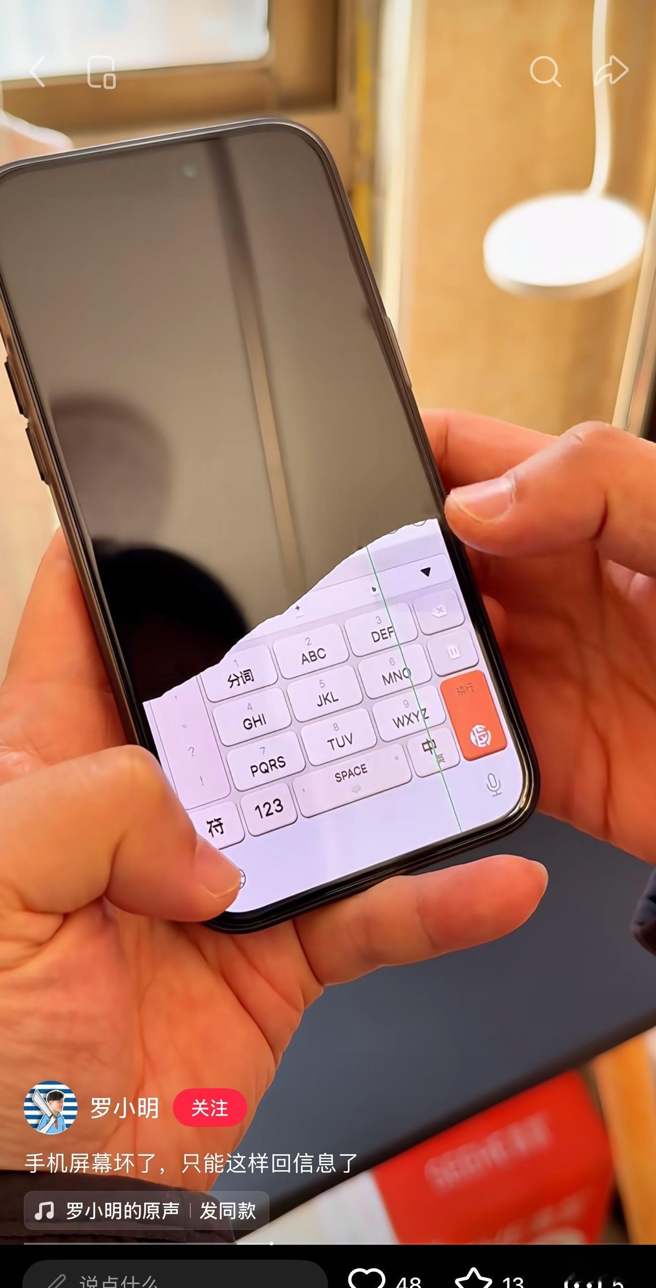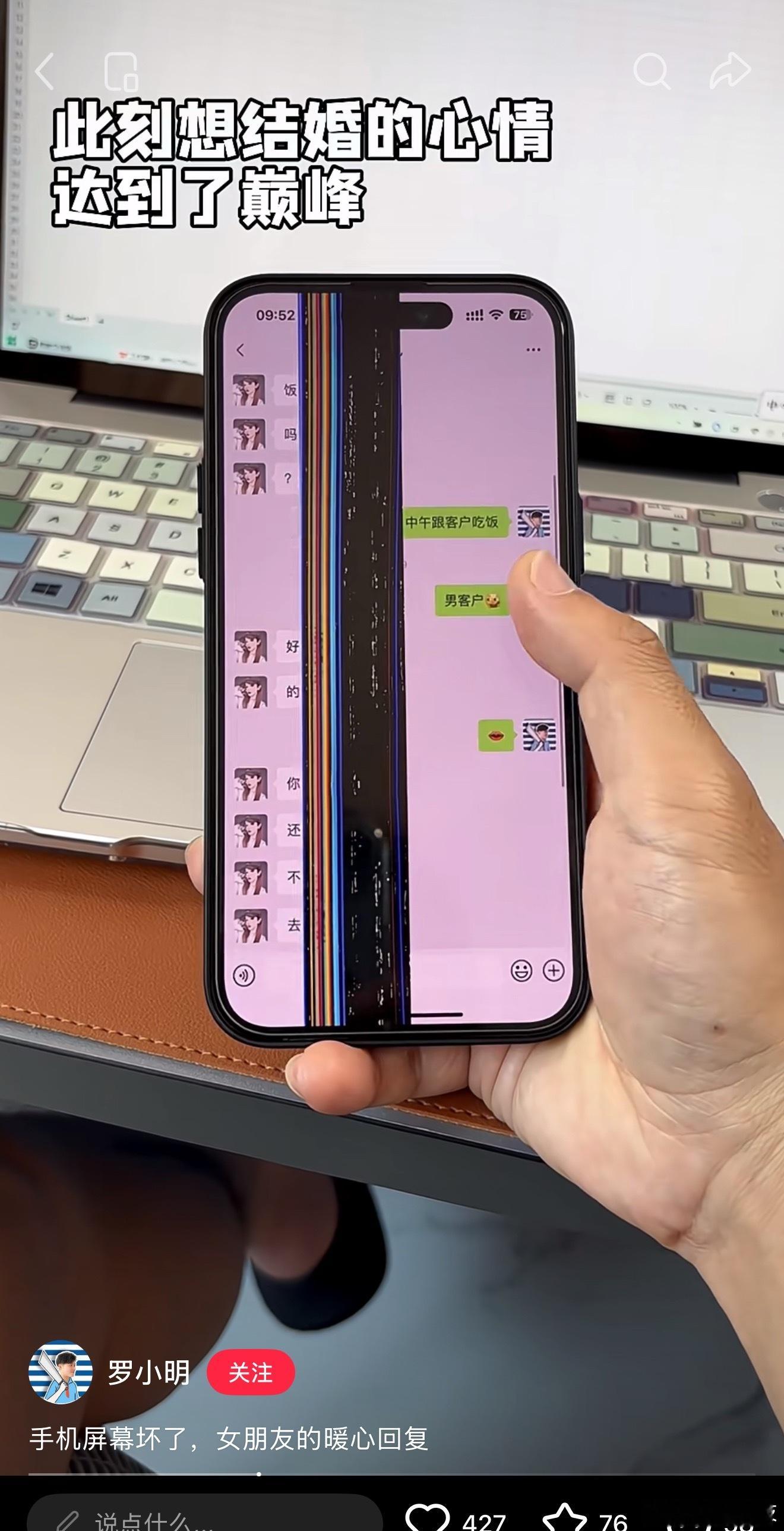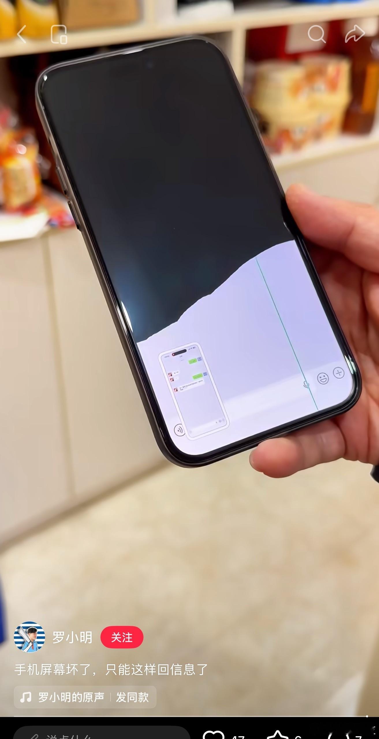 手机坏成这样还能发消息无聊,素材来源都是同一个作者,翻了翻他的主页,多次用屏幕坏掉的苹果手机在不同场景下拍视频,就是刻意博流量的!现在互联网!除了权威新闻!我一个不信!