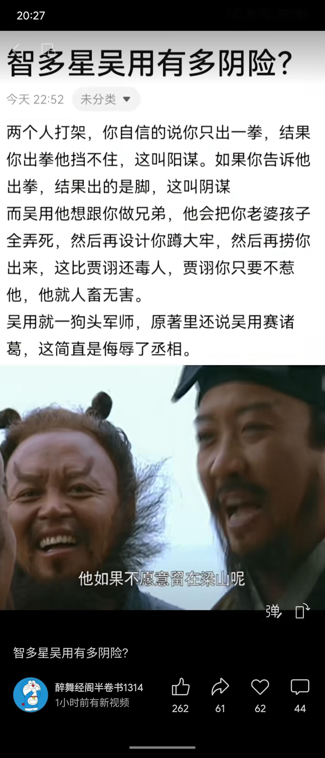 以比喻方式批判吴用的阴险:阳谋是明拳难挡,阴谋是声东击西,而吴用更毒。为逼人上梁山,他会先害死对方妻儿,再设计冤狱,然后解救以示恩惠。相比贾翊的被动,吴用主动害人,被斥为狗头军师,有辱诸葛亮之名。