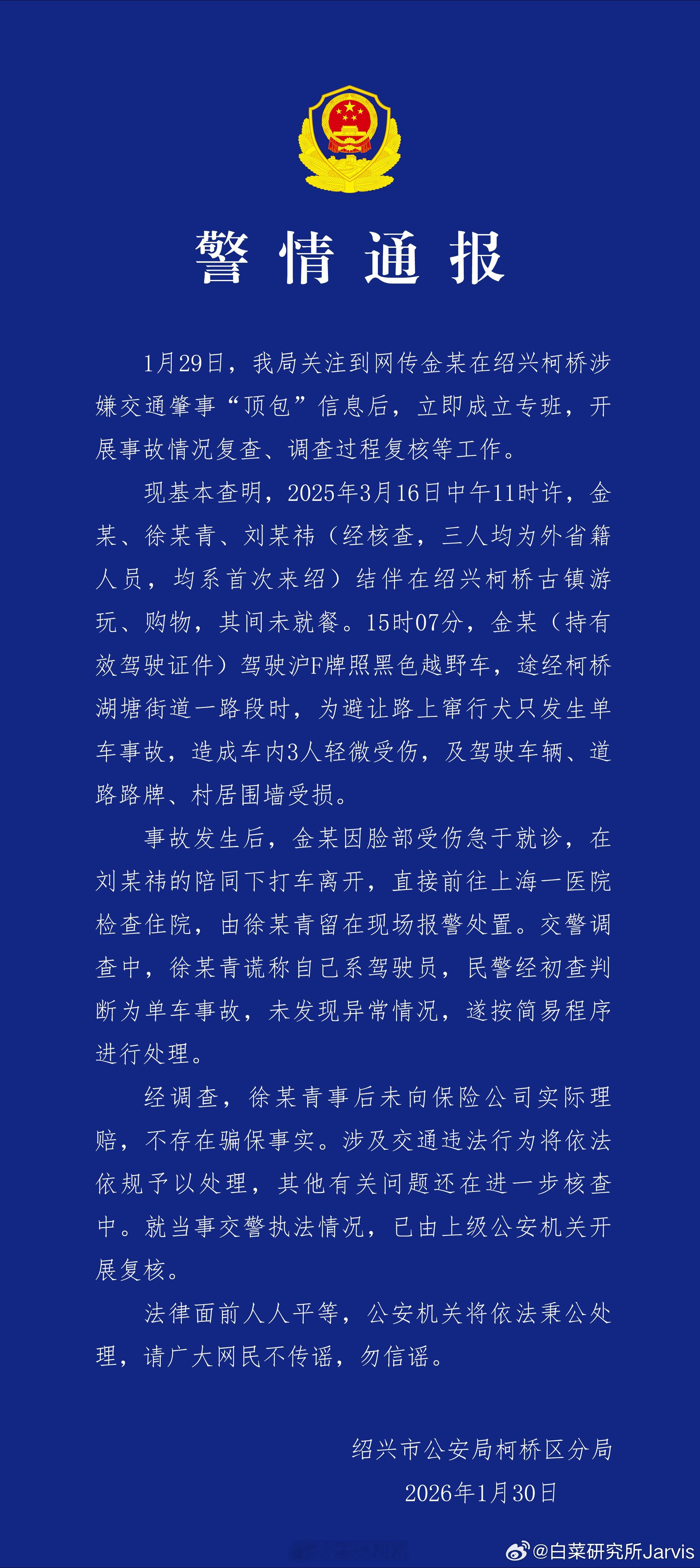 警方通报金晨事件 处理舆情的标杆案例了,没有急着应对导致水变混,等警方调查结果出来、上一波言论释放完,再把事实一次性澄清,反而没那么多尾巴。话说也是吓一跳,别现在就出发看不了了。
