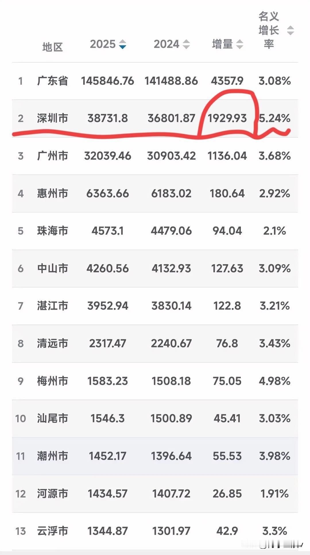 两广相比广西还是太弱了,2025年广西GDP2.97亿不足3万亿,不及广州市(3.2万亿),广西总量相当广东14.58万亿的20%。 西部陆海新通道主要承载地(港口集装箱进入全国前10、全球前30强)、广西沿海核心城市钦州GDP1908亿,不及深圳市一年增量(1930亿),且增速强劲。 看来,差距不是一般般,广西真的要加把劲,超常规发展!才能逐步缩小差距。