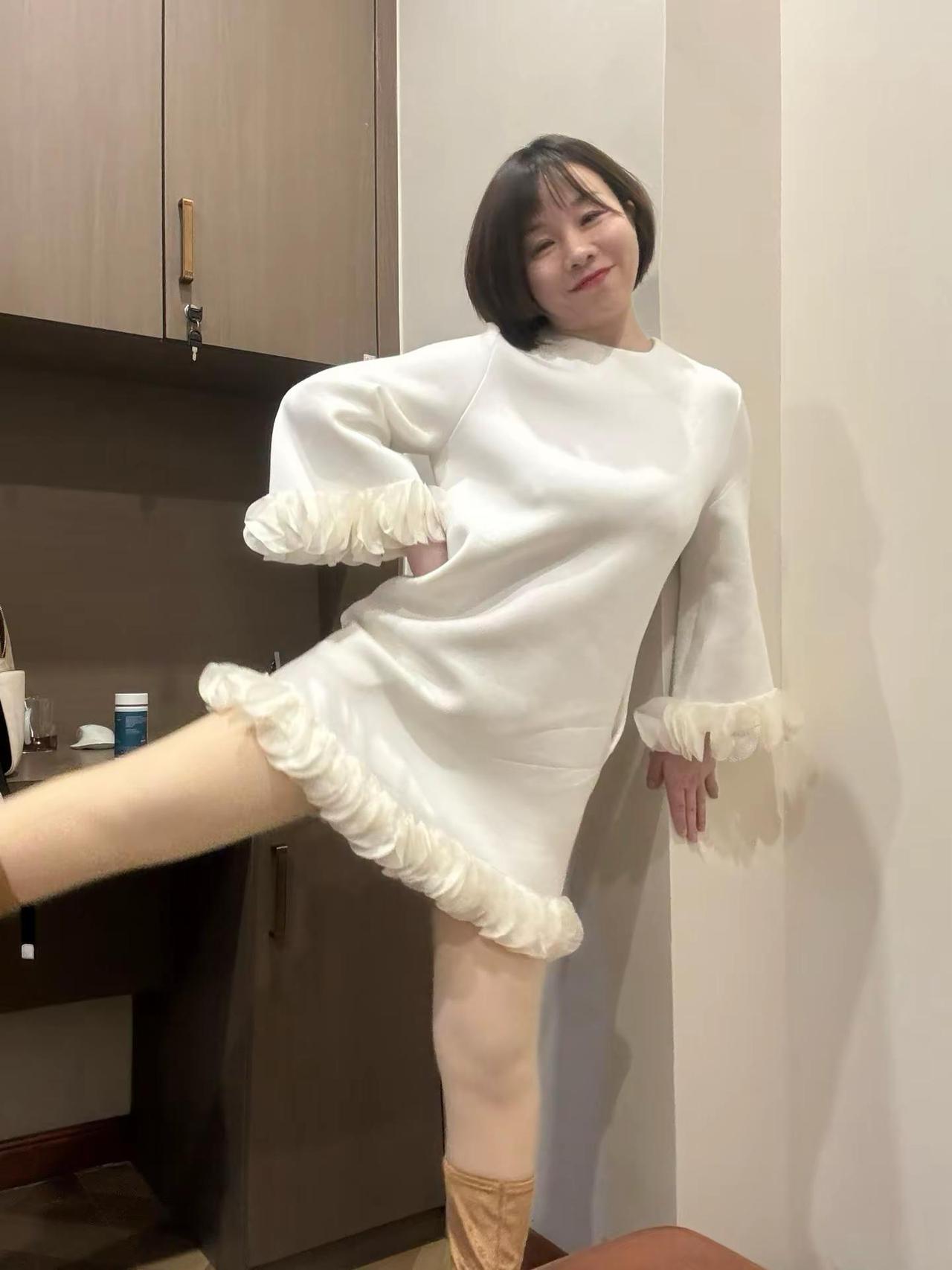 优雅白裙少女,漫步在古典长廊,尽显时尚与气质。