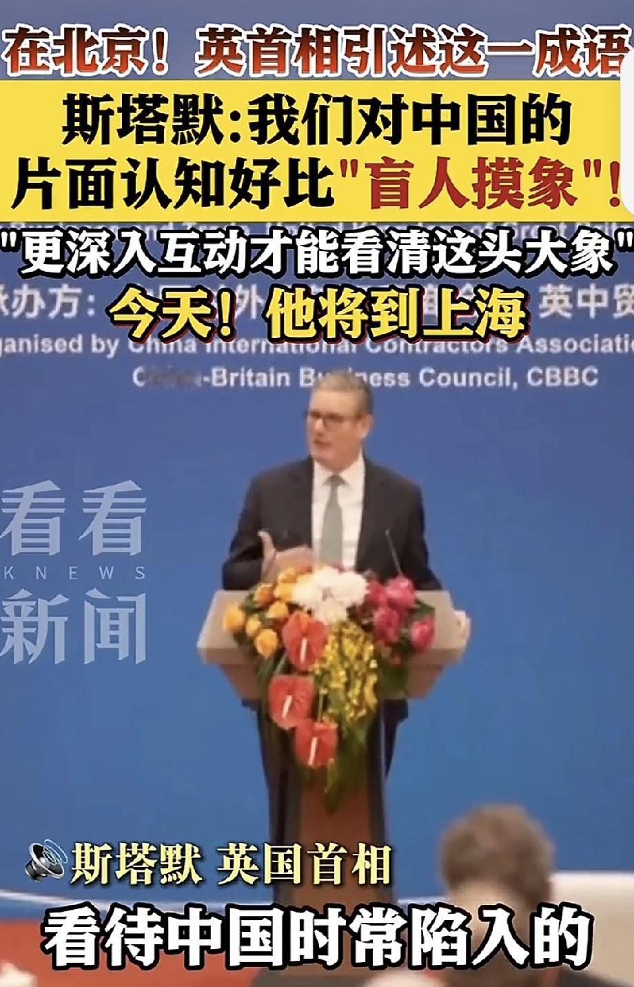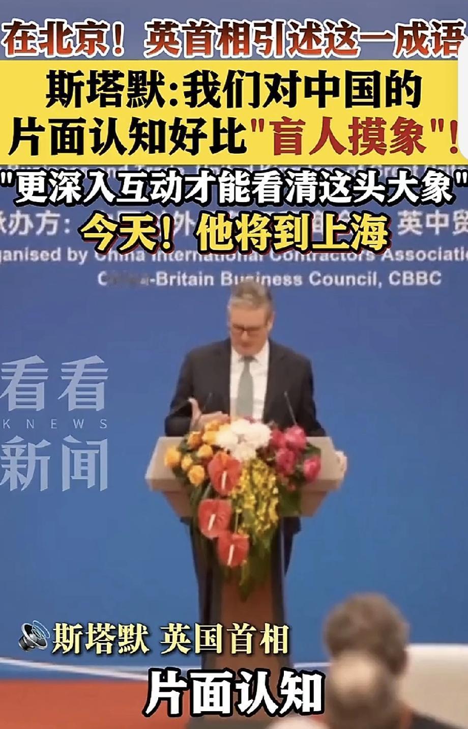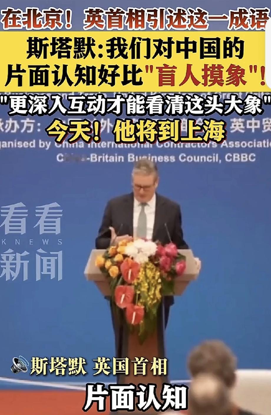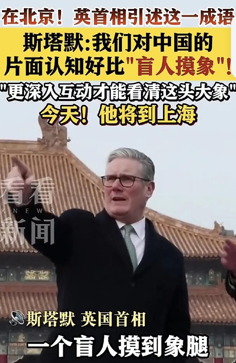 英首相:我们对华片面认知是盲人摸象 英国首相说对华片面认知是盲人摸象,这话算是说到点子上了。长久以来,部分西方政客和媒体戴着有色眼镜看中国,只盯着他们想看到的那一小部分,就像盲人只摸到大象的腿就说大象像柱子。 比如之前一些西方媒体无端指责中国的发展模式,却忽略了中国让数亿人脱贫的伟大成就。中国在科技、经济等领域的飞速进步也被他们选择性无视。只有摘下偏见的有色眼镜,全面、客观地认识中国,才能真正了解这个古老而又充满活力的国家。希望英国能从首相这番话出发,开启对中国的正确认知。