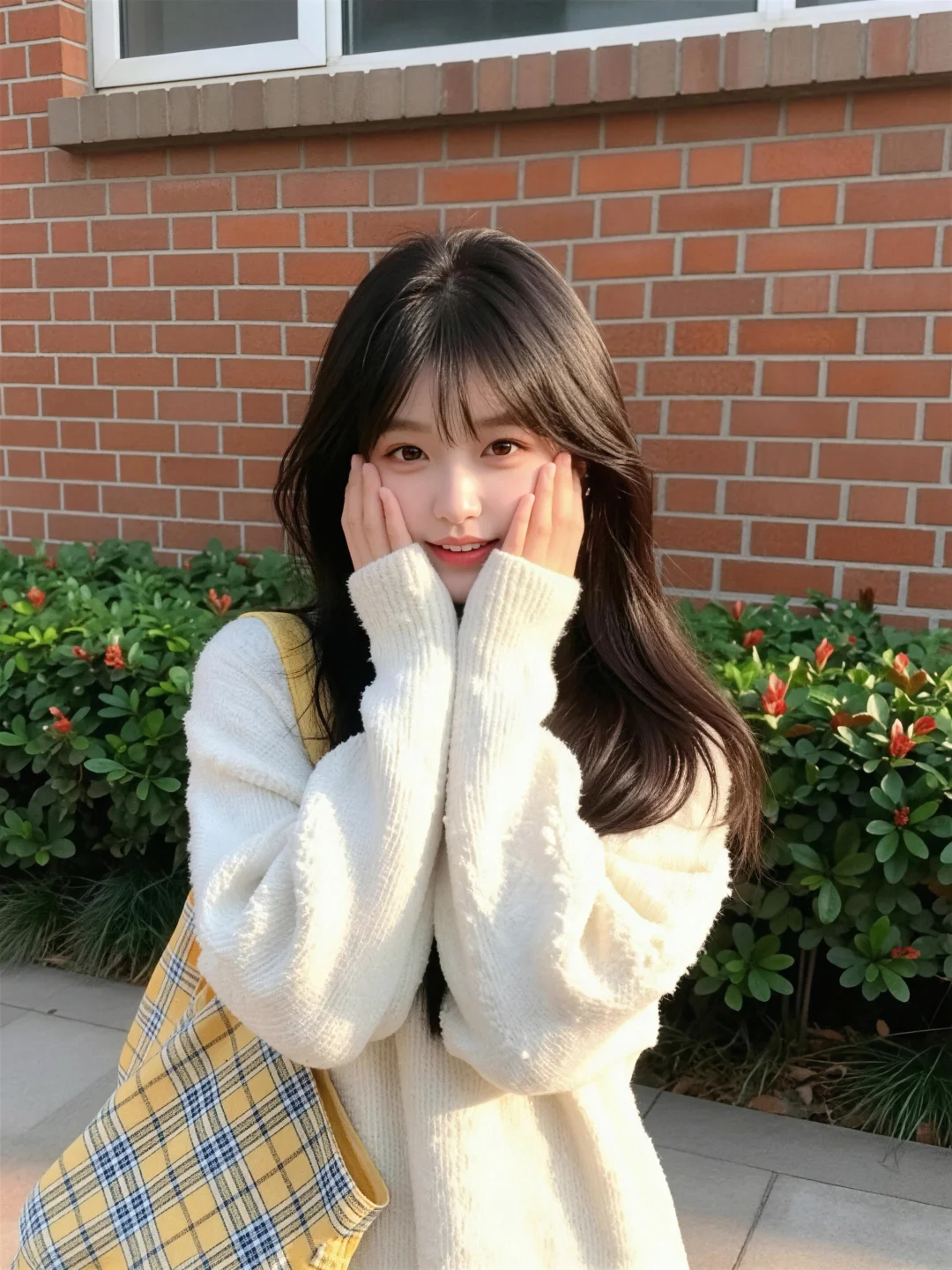 真实摄影,亚洲美少女薇薇,小清新风格,冷白皮,水光肌,超白皮肤泛着光泽,红棕色长