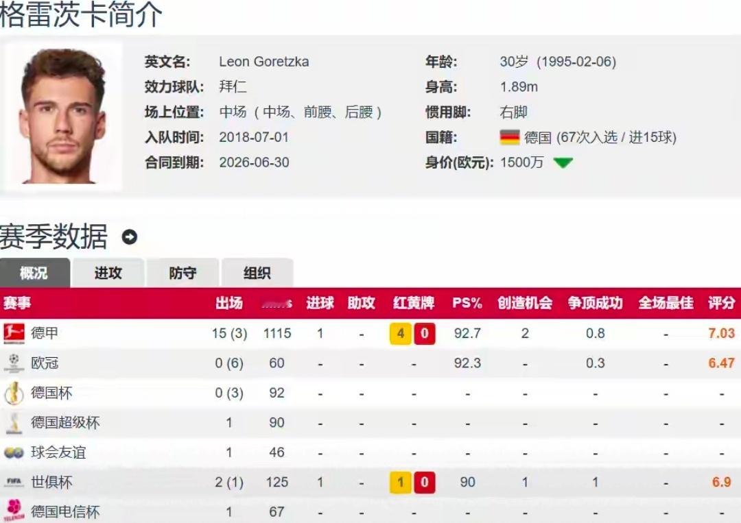 官方确认:格雷茨卡今夏自由身离队 结束8年拜仁生涯今夏拜仁将迎来又一位老臣的告别,球队30岁德国中场格雷茨卡确认合同到期后离队。1月30日拜仁赛前发布会上,体育总监弗罗因德正式官宣,俱乐部不再与格雷茨卡续约,这位中场将在本赛季结束后以自由身离开,为自己长达8年的拜仁生涯画上句号。格雷茨卡出自波鸿青训,2013年夏窗他以325万欧元转会费从波鸿加盟沙尔克04,2018年夏窗以自由身转投拜仁,此番离队也堪称“自由身来,自由身走”。8年拜仁生涯,格雷茨卡为球队出战各项赛事292场,贡献47球48助攻,随队斩获1座欧冠冠军、6次德甲联赛冠军、2座德国杯冠军等多项荣誉,成为球队王朝时期的重要一员。现年30岁的格雷茨卡身高1.89米,司职右脚中场,可胜任前腰、后腰等多个位置,目前德转估价1500万欧元。本赛季至今,他为拜仁各项赛事出场31次,其中18次首发,累计登场1480分钟,打入1球,是球队中场阵容中的重要轮换球员。