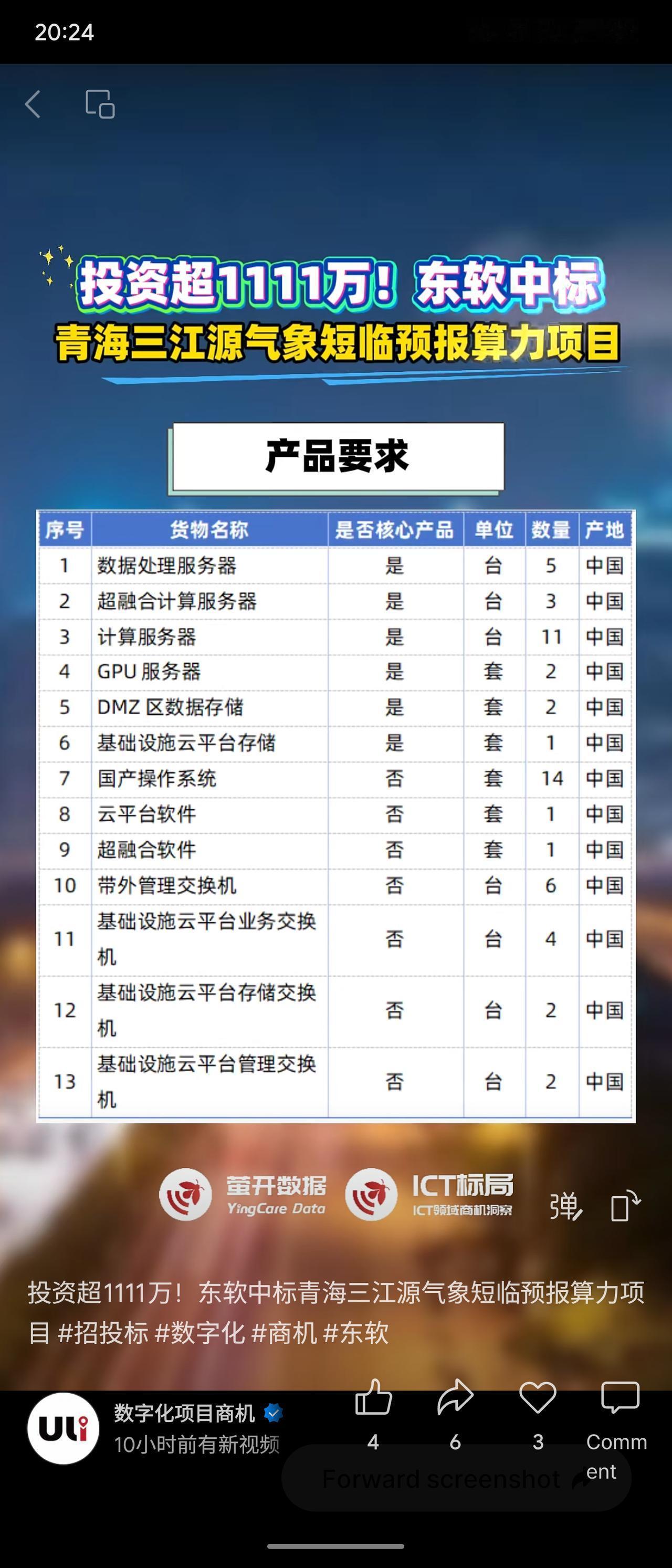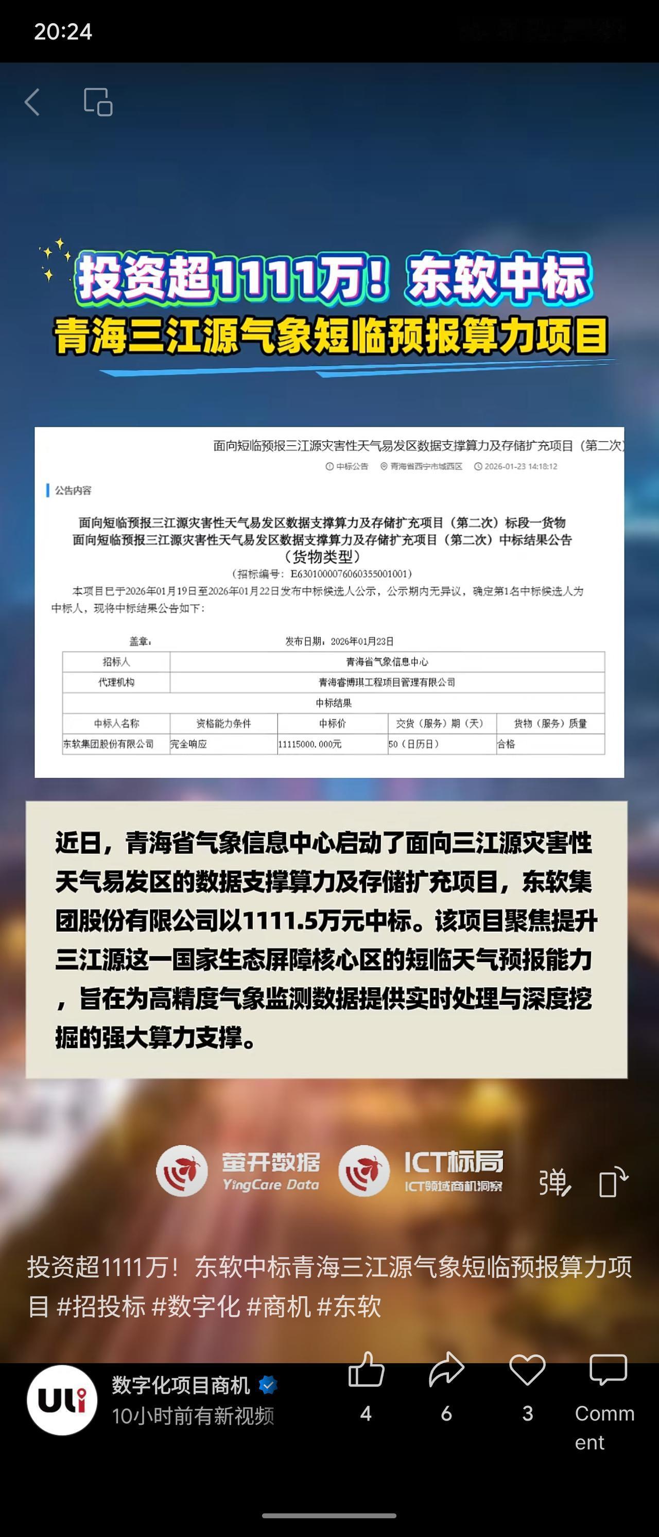 青海省气象信息中心招标的“三江源气象短临预报算力项目”由东软集团以1111.5万元中标。项目将采购服务器、存储及云平台等设备,用于提升三江源灾害性天气的短临预报数据处理与算力支撑能力。