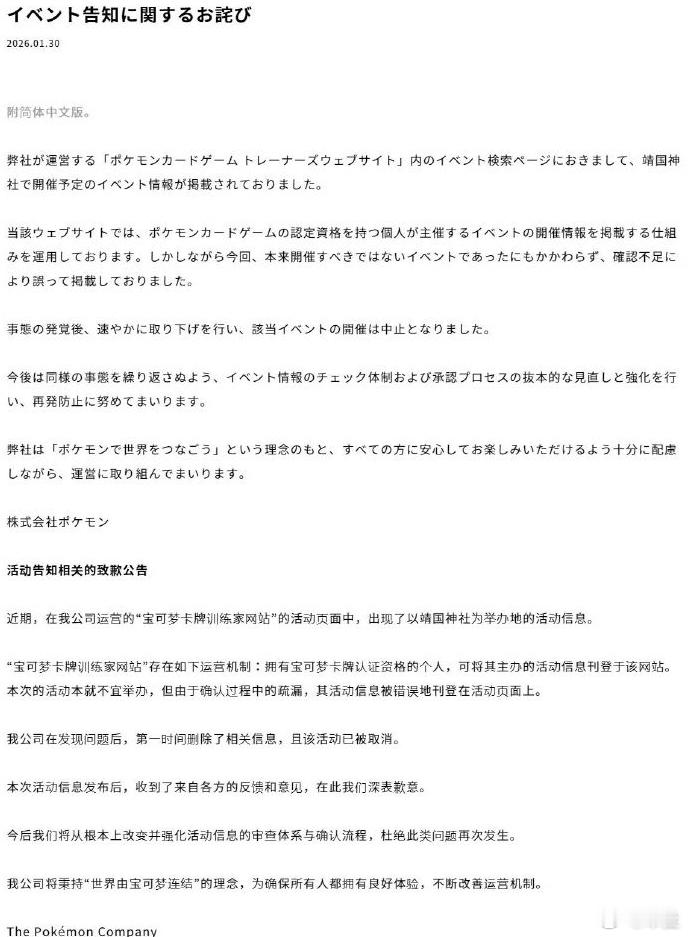 宝可梦道歉了 这样的活动怎么也需要公司的高层审批许可的吧?靖国神社这个名字,无论是在中国还是日本,代表着什么,会引发怎样的后果,不是人尽皆知吗?所以这次道歉,我个人的觉得很符合那句话“他们不是知道错了,而是知道自己要___了。”