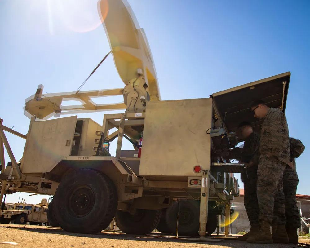 美军广泛采用VSAT卫星通信系统来保障指挥、控制和情报传输。 美国海军陆战队员隶属于第九通信营,第一海军远征军信息组(MIG),在加利福尼亚州彭德尔顿海军陆战队基地进行演示时,作一台非常小的孔径军用卫星通信终端(VSAT)——大型。VSAT训练支持第9通信营运营、防御和维护信息网络的任务。 VSAT卫星通信系统,VSAT 是 Very Small Aperture Terminal 的缩字,直译为甚小口径卫星终端站。所以也称为卫星小数据站(小站)或个人地球站(PES),这里的“小”字指的是VSAT卫星通信系统中小站设备的天线口径小,通常为0.3-1.4M。VSAT系统具有灵活性强,可靠性高,成本低,使用方便以及小站可直接装在用户端等特点。