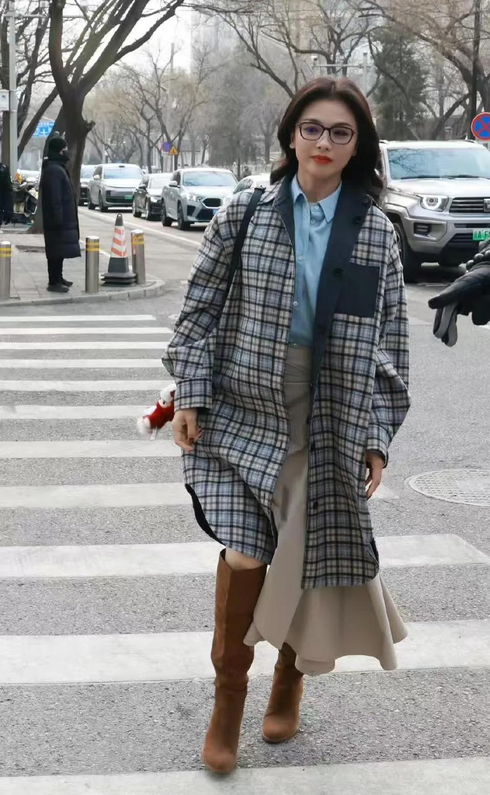 涛姐这波中年穿搭,赢麻了✨ 被刘涛今日的街拍狠狠戳中审美! 格纹大衣松弛又有范儿,内搭清爽的浅蓝色衬衫,下身配米白色半裙和麂皮长靴,整套配色温柔又高级,把“知识分子风”和“松弛感”平衡得刚刚好。 谁说中年女性只能穿得“妈妈感”?涛姐用实力证明,选对版型和配色,照样能穿出时髦又大气的气质,这波穿搭值得所有轻熟女抄作业!