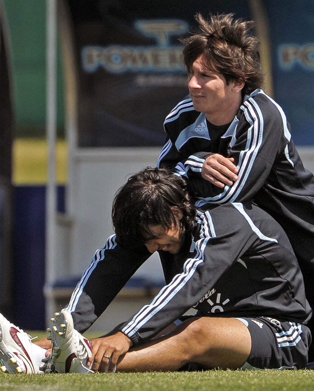 2013年左右,年少的内马尔与临近退役的罗纳尔迪尼奥同框。传奇的火炬就此传递——