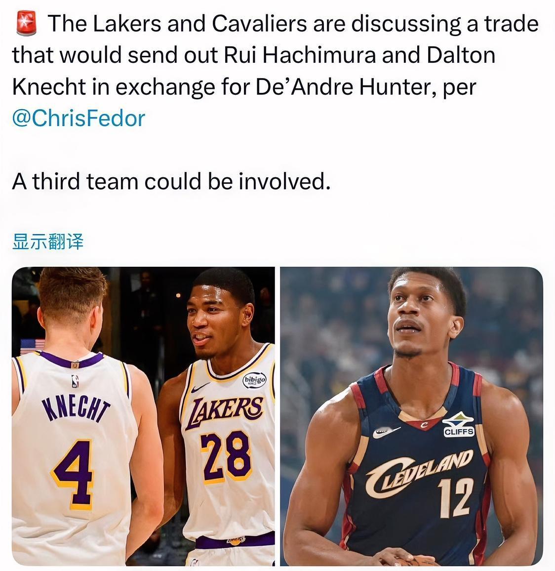 湖骑潜在交易逻辑解析! 湖人与骑士的潜在交易方案被骑士队记实锤了,按照Chris Fedor的说法,两队筹码主体分别为八村+克内科特与德安德烈亨特。这算得上湖人切实可行的交易方案之一,不过其真实补强意味并不浓厚,甚至可以把骑士看作更积极的一方,因为他们现在是联盟第一纳税大户,也是唯一一支在二奢线上的球队,战绩的退步加上亨特本季糟糕的状态(本赛季外线命中率30.9%创下生涯新低)。 那么湖人为何没有采用边缘到期合同+选秀权的模式去操作,而是直接动用主力轮换八村呢?有以下几点原因: 1.之前分析过八村在新框架中的首发位置很尴尬,这里主要是指适配性,而他的新合同均薪很可能在2000万以上,这个价位若续约一名替补球员管理层认为不值,因此不打算再继续合作。 2.湖人不需要在这笔交易中出首轮签,保留了休赛期更进一步的交易资产,骑士能够摆脱亨特的合同已经是万幸,况且八村目前竞技状态更佳,克内科特也有希望换队以后重新打出救赎表现。 3.湖人这些年撑出来的薪资空间得以部分保留。 4.亨特本赛季篮较差,防守也不算积极,有一种说法是他在摆烂,参考他职业生涯平均水平,确实不至如此,因此不管是为了明年侧翼的空虚做准备,还是赌一次合同年,亨特都是值得考量的对象,至少前两天打湖人这场球亨特算是面试成功了!另外从过往经历来看,他能完成的工作内容显然比八村更多,作为标准体型的锋卫摇摆人,不光消除了一个被点名的位置,还能分担一定的领防作用。 说起来亨特与湖人还是有缘,当年被小马哥抽中拿去换浓眉的4号签,最后又被送到老鹰选中了他,如果这笔交易真的达成,也算是一个轮回!不过两队受限于薪资规则原因,还需要拉上第三方才能完成这笔操作,篮网、爵士、奇才都是可能的合作伙伴。对湖人来讲以他们目前的架构,很难通过单笔交易立刻成为总冠军的有力争夺者,只能边朝目标方向靠拢,边等重大机会出现!若八村离开,后詹眉时期的痕迹将进一步变淡,让人唏嘘!