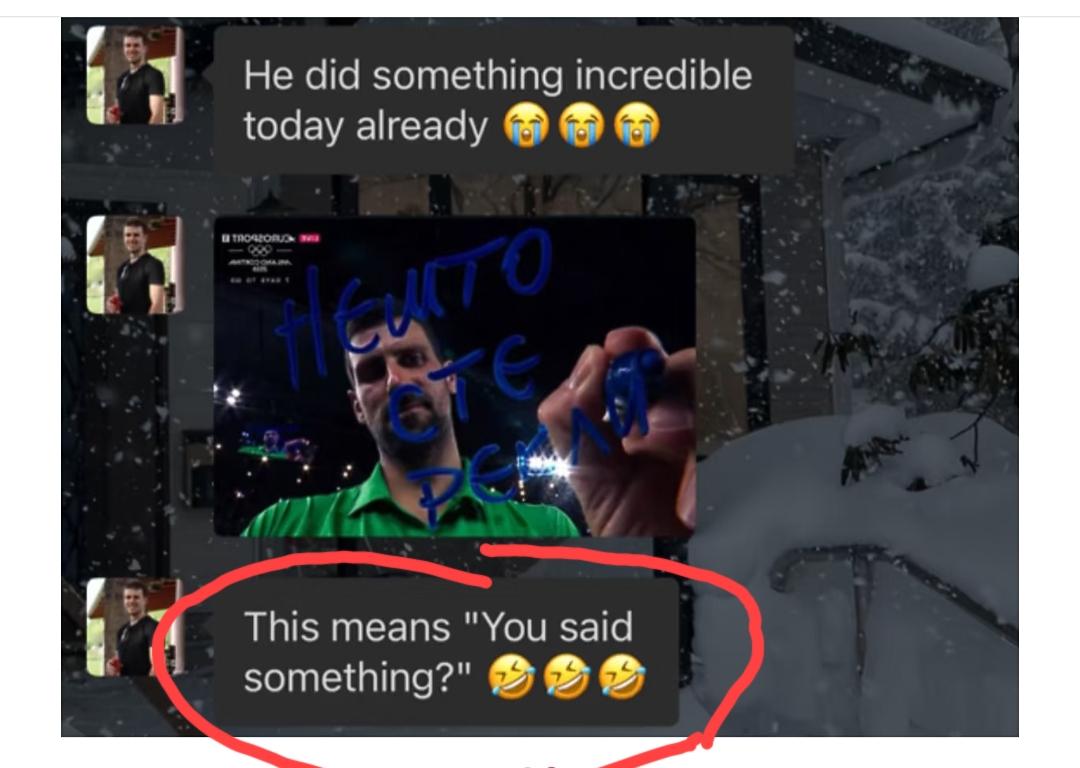 德约镜头签疑是回怼那位说他“追赶辛卡”的记者,这会辛纳估计恨死那位记者了“你没事惹他干啥呢”? 昨晚德约战胜辛纳后镜头签的时候罕见的用上了他的母语塞尔维亚语,意思是“you said someing”。如此看来,强如德约,还是非常在意他人的看法的,还是习惯性被挑衅。可能正是这位记者当时无脑的提问,才让他在这场比赛中状态直接拉满。 如果明天德约再次击败阿卡,我倒特别好奇他的镜头签又会是什么?