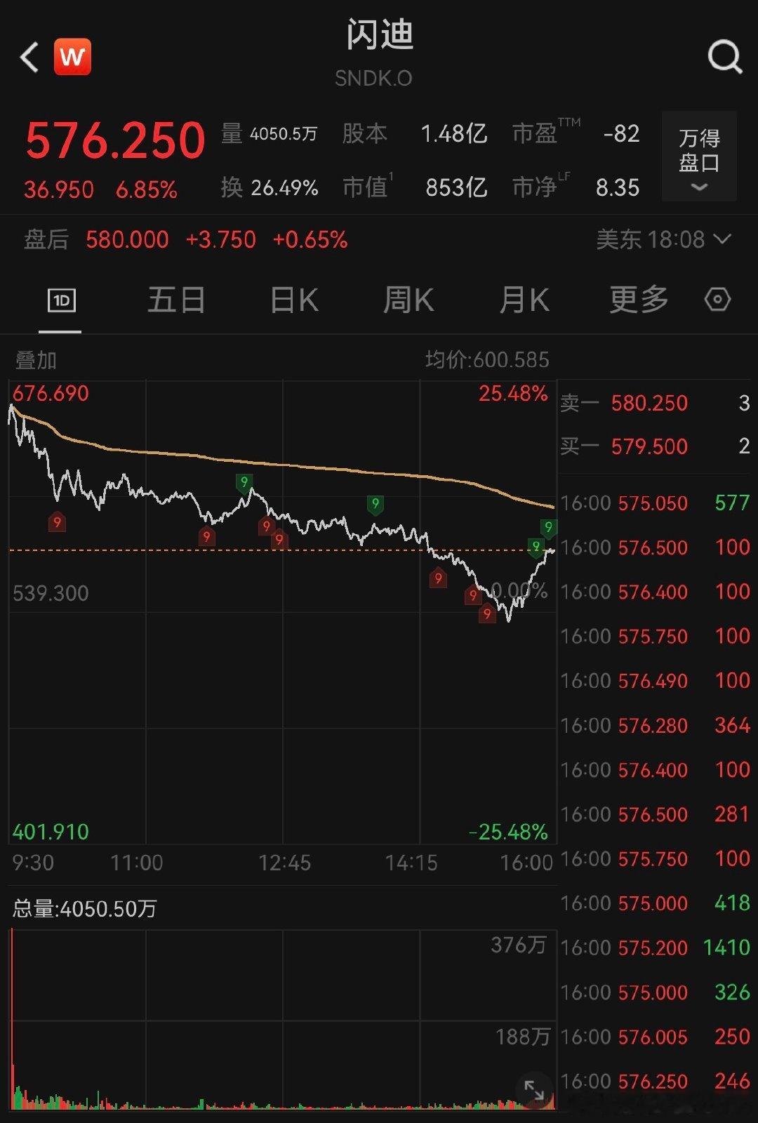 存储股涨跌不一,闪迪收涨6.85%,盘中一度涨超25%,公司季度营收和每股收益均远超预期。西部数据跌10.12%,希捷科技跌8.71%,美光科技跌4.8%。(财联社)