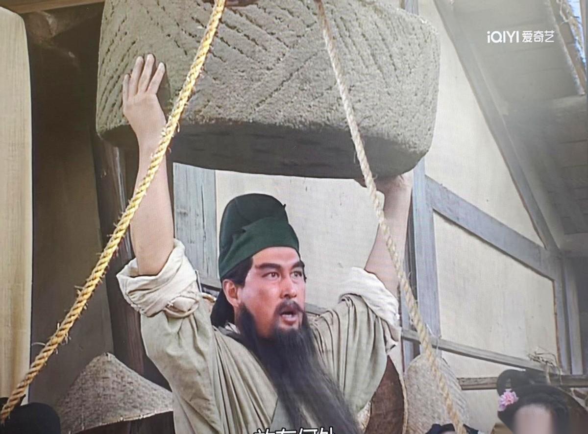 重看94版《三国》,第一集就给我干懵了。 一个卖绿豆的,一个卖猪肉的。猪肉佬的伙计不卖肉,指着旁边一口井:“肉在井里,上面压着磨盘。谁搬得动,肉白送。” 话音刚落,那个卖绿豆的红脸大汉走上前,二话不说,俯身抓住磨盘边缘,青筋暴起,一声低吼,几百斤的石头直接举过头顶。 他甚至还扛着磨盘在人群里走了几步,问那伙计:“放哪儿?” 伙计手里的刀都快拿不稳了,哆哆嗦嗦指着原地。红脸汉子直接把磨盘往旁边一扔,“咣”的一声,地都震了一下。 肉分了,众人欢呼。 突然,人群外一声暴喝,卖猪肉的本尊回来了。一个黑脸壮汉,豹眼环须,冲过来二话不说,从豆子摊上抓起一把绿豆,手掌一合,再张开,一把豆子,全成了绿色的粉末,从指缝里往下掉。 下一秒,两人就打在了一起。拳脚相加,尘土飞扬,周围的摊子被撞得稀里哗啦。几十个回合下来,谁也奈何不了谁。 最后,两人手臂死死缠在一起,手掌握着手腕,开始角力。那不是普通的掰手腕,是两个怪物在拼命,你能看到他们胳膊上的肌肉像石头一样鼓起,脸都憋成了紫色,周围的空气仿佛都凝固了。 就在这时,一个卖草鞋的,一直坐在旁边默默无闻,他站了起来。 他慢悠悠地走到两个怪物中间,没说话,只是伸出两只手,一只手搭住一个人的胳膊,然后,就像是分开两个正在闹别扭的小孩一样,轻轻一用力,就把那两双死死锁在一起的手,给分开了。 分开了。 扛磨盘的和捏豆成粉的,两个人踉跄着各退一步,同时扭头,看着这个卖草鞋的。 整个闹市,鸦雀无声。 说真的,能把这种级别的两个人像拎小鸡一样分开,这个卖草鞋的,到底是个什么东西?