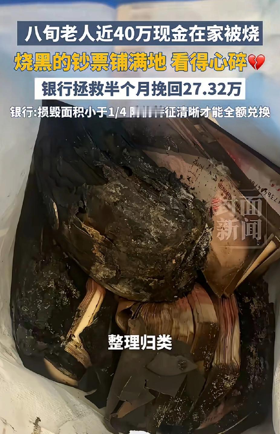 四川一老人家中发生火灾,近40万现金被烧毁!银行成功兑换27.32万 “我这辈子没见过这么惨的!”在自贡工商银行贡井支行,工作了16年的李先生面对眼前的一幕,震惊得几乎说不出话来。 柜台前,赵女士小心翼翼地从袋子里取出一叠叠焦黑的“钱”。这些曾经是崭新百元大钞的纸片,如今已被火焰吞噬得面目全非,边缘蜷曲发黑,轻轻一碰就可能化为灰烬。它们被整齐地排列在银行柜台上,像一场悲剧的无声证物。 “这是我爷爷奶奶的全部积蓄,差不多40万,全在家里烧了。”赵女士的声音有些颤抖。 不久前的一个深夜,赵女士爷爷家突然起火。消防员扑灭大火后,两位老人在废墟中翻找的不是珠宝首饰,不是贵重物品,而是一个铁皮盒子——里面装着他们一辈子的积蓄。 “银行不安全”——这是老两口固执的信念。他们经历过物质匮乏的年代,亲眼见过银行倒闭、货币贬值的风险。对他们而言,把钱换成实实在在的现金藏在家里,才是最可靠的。每晚睡前,他们都要确认那个铁皮盒子安然无恙,才能安心入睡。 而他们的孙女赵女士,一个典型的现代年轻人,对此完全无法理解。她曾多次劝爷爷奶奶把钱存入银行,“哪怕只是活期存款,也比放在家里强啊!”但每次都被固执地拒绝:“你懂什么?银行里的钱就是个数字,哪天系统出问题,什么都没了!” 这场火灾,让两代人之间的金钱观冲突达到了顶点。 银行工作人员李先生和同事们开始了艰难的清点工作。他们戴上白手套,拿着镊子、刷子等工具,小心翼翼地分离粘连在一起的残币。每张纸币的残留面积需要精确测量,符合规定才能兑换。这个过程需要极大的耐心和专业判断。 “这一张还能认出面额,可以兑换。”“这几张已经完全碳化,没办法了。”李先生一边工作一边摇头叹息。最终,经过数小时的鉴定,约27.32万元残币符合兑换标准,而剩下的则化为了永远的灰烬。 这场火灾引发的讨论在网络上迅速发酵。有人批评老人固执:“这就是不信任现代金融体系的代价!”也有人表示理解:“老一辈的经验教训让他们形成了这种思维模式,不能简单说对错。”更有年轻人反思:“我们是否太过依赖电子支付和虚拟账户了?” 赵女士站在银行大厅,看着工作人员清点残币的背影,心中五味杂陈。她既心疼爷爷奶奶的损失,又对他们固执己见感到无奈。而两位老人得知消息后,只是默默流泪,一句话也说不出来。 这场大火烧毁的不只是40万现金,更烧出了中国社会转型期中两代人价值观的深刻裂痕。在数字化支付已成主流的今天,仍有相当一部分人坚守着“现金为王”的传统观念。而这场意外,让所有人都不得不思考:我们的钱,到底放在哪里才真正安全? 在银行工作人员最终将兑换的26万元新钞交到赵女士手中时,她轻声问道:“李先生,您工作了这么多年,觉得钱到底该放哪里?” 李先生沉默片刻,给出了一个意味深长的回答:“钱放哪里都可能有风险,但最重要的是,别让钱成为生活的全部。” 这句话,或许才是这场悲剧最值得深思的教训。