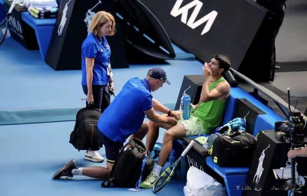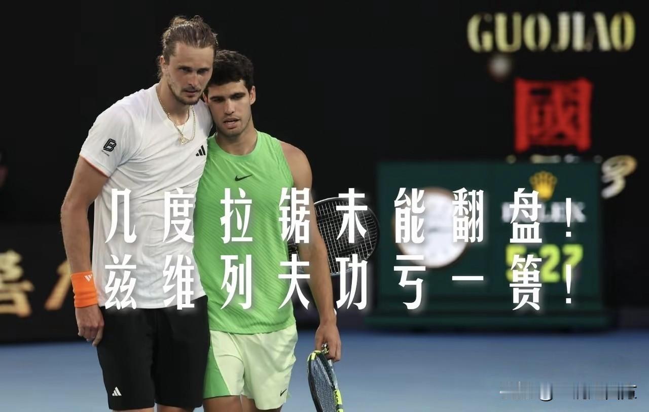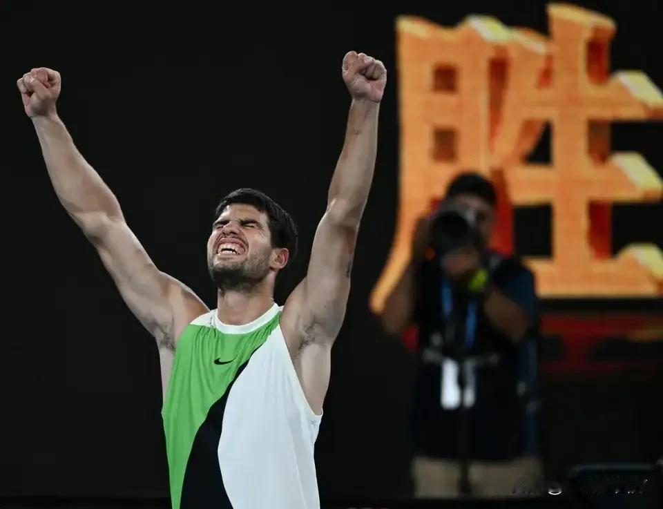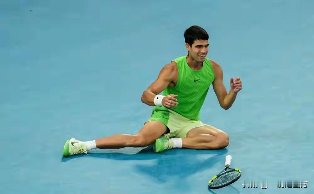昨天与小兹维列夫在墨尔本公园鏖战5小时27分钟惊险取胜,创造澳网半决赛最长比赛时间纪录的阿尔卡拉斯,无意间还创造了一项纪录,这就把先赢两盘的不败纪录升格到60胜0负,也就是说,迄今为止,只要他在五盘三胜的比赛拿下前两盘,最终获胜的都是他!而昨天这场鏖战,在他的60场胜利中难度一定是排在前面,因为他在顺利赢下前两盘并在第三盘5-4领先手握发球胜赛局时,眼看就要3-0完胜,结果突然遭遇大腿伤情,申请医疗暂停后,一瘸一拐地走下场,兹维列夫向裁判提出抗议但未被采纳。 处理完伤情回来后,阿卡的移动受到影响,兹维列夫趁机通过抢七扳回一盘,接着又拿下第四盘,决胜盘又是5-4领先,并手握发球胜赛局,阿卡已命悬一线,结果,他拖着伤腿一次次大范围跑动救球,硬生生把紫薇的致胜发球局破掉了,将盘分扳成5平,击碎了兹维列夫的信心,他接着一鼓作气连拿两局7-5赢下决胜盘,3-2拿下这场艰苦的马拉松鏖战,首次晋级澳网决赛,也实现了四大满贯全部打进决赛的小目标,距离心心念念的全满贯仅差一步,如果能在决赛跨越赛会十冠王德约科维奇这一关,就能梦想成真,超越纳达尔,成为最年轻的全满贯得主。