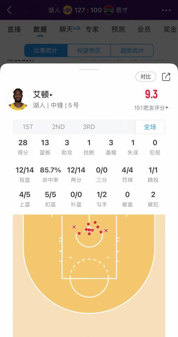 28+13!艾顿在奇才身上找到了自信。大周末的终于舒服了一把。布朗尼上场,比赛宣告进入练兵…… 今天湖人对阵奇才,东契奇开场就火力全开,用统治级表现点燃了全场。 这样湖人就可以继续苟住西部第六了……